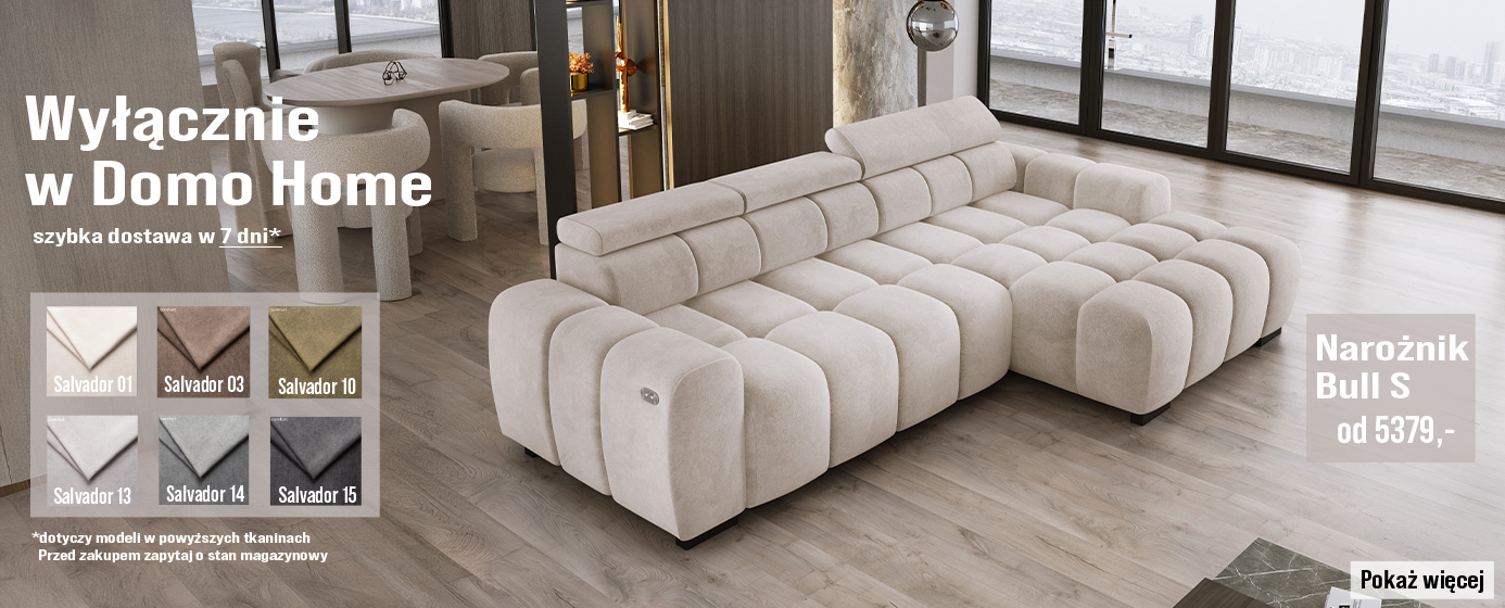 W Domo Home stawiamy na meble łączące w sobie piękno i funkcjonalność. Niezależnie od tego, czy urządzasz małe mieszkanie, przestronny dom z ogrodem czy wynajmowane studio – u nas znajdziesz coś dla siebie. Różne style, kolory i materiały pozwolą Ci łatwo dopasować wszystko do tego, jak chcesz mieszkać. Pomagamy stworzyć wnętrze, w którym będziesz się czuć komfortowo i swobodnie. Sprawdź, co nasz sklep internetowy z meblami Wersal, Sagan, Meble Laski i Sofello ma do zaoferowania. W Domo Home znajdziesz swoją nową sofę, łóżko lub komodę!