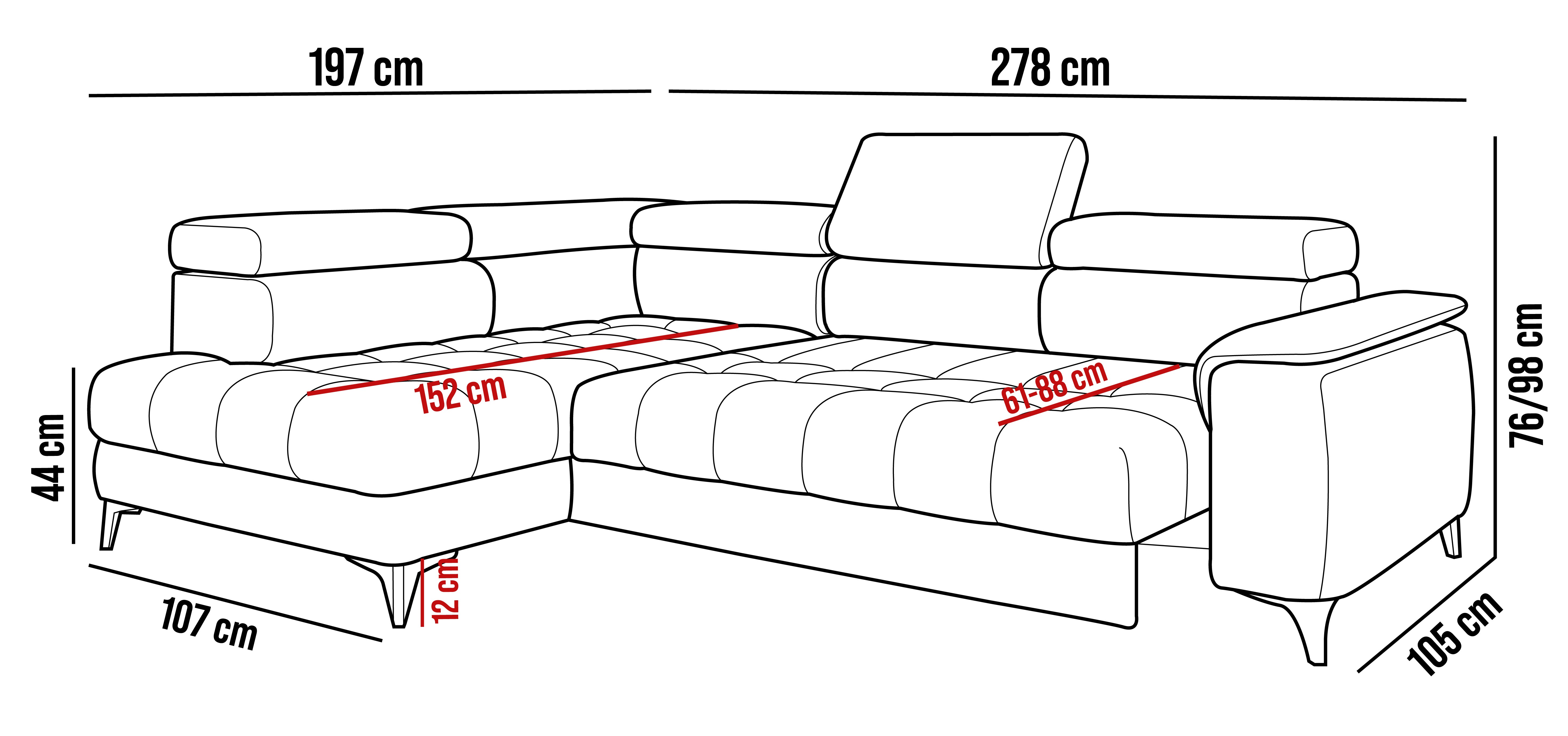 Narożnik CHIVAS L z Elektryczną regulacją siedziska WERSAL
