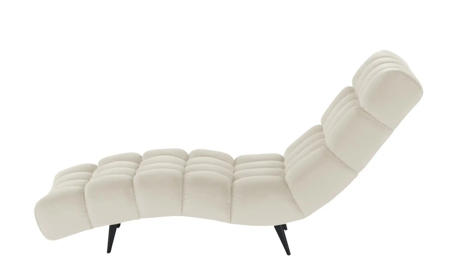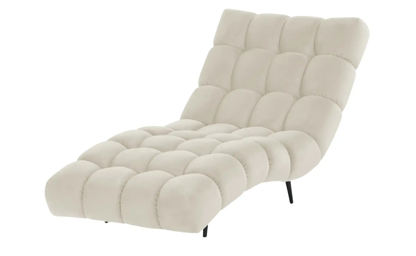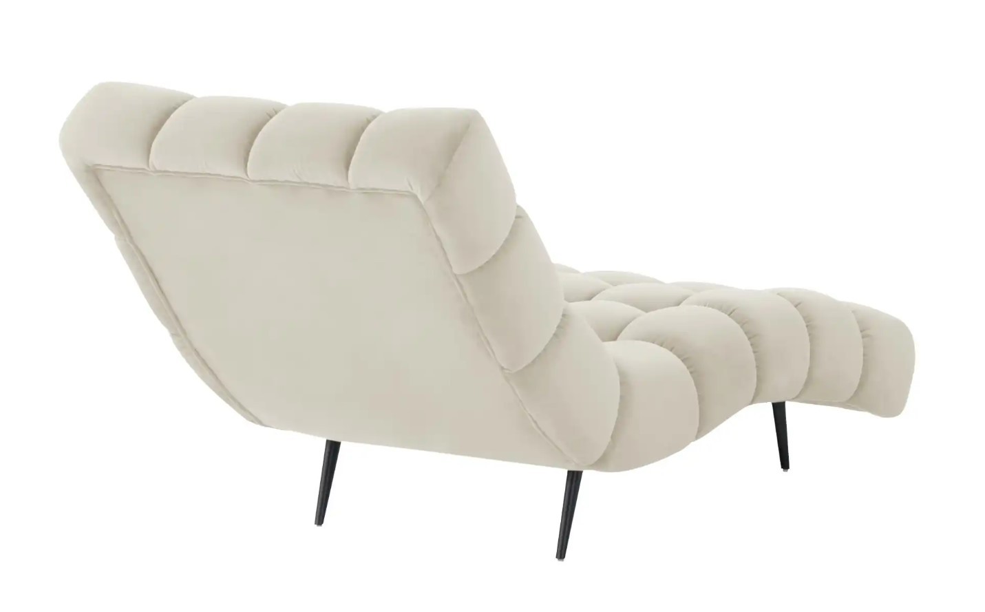 Solidne, czarne nogi nadają całości ponadczasowego charakteru i stabilności, a wykończenie tylnej części tą samą tkaniną sprawia, że szezlong jest meblem wolnostojącym, który prezentuje się efektownie z każdej strony.