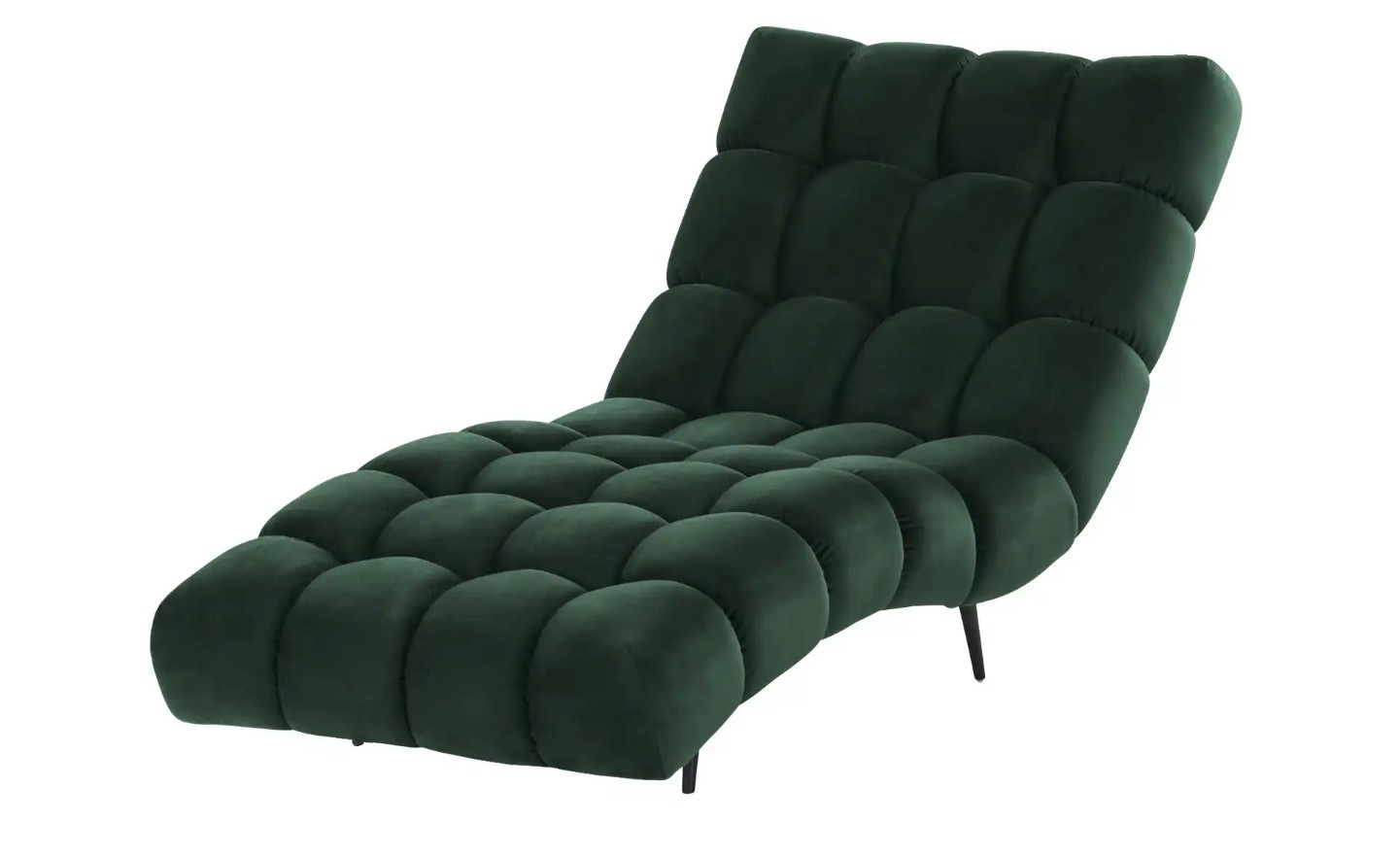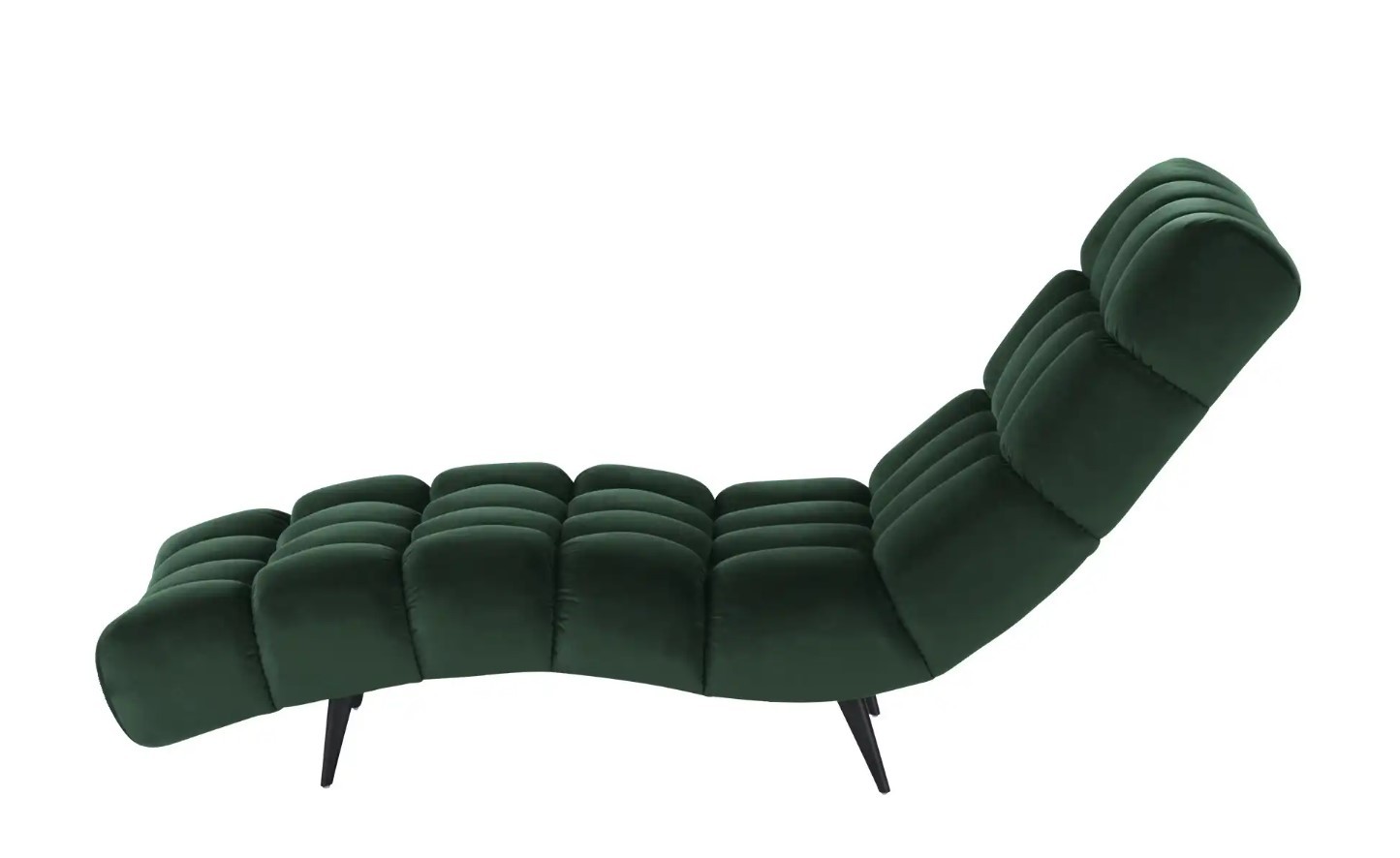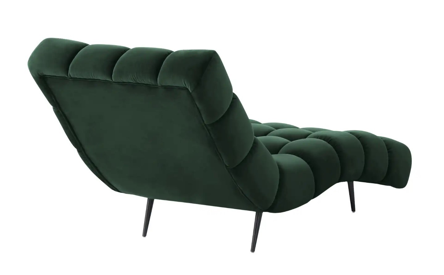 Solidne, czarne nogi nadają całości ponadczasowego charakteru i stabilności, a wykończenie tylnej części tą samą tkaniną sprawia, że szezlong jest meblem wolnostojącym, który prezentuje się efektownie z każdej strony.