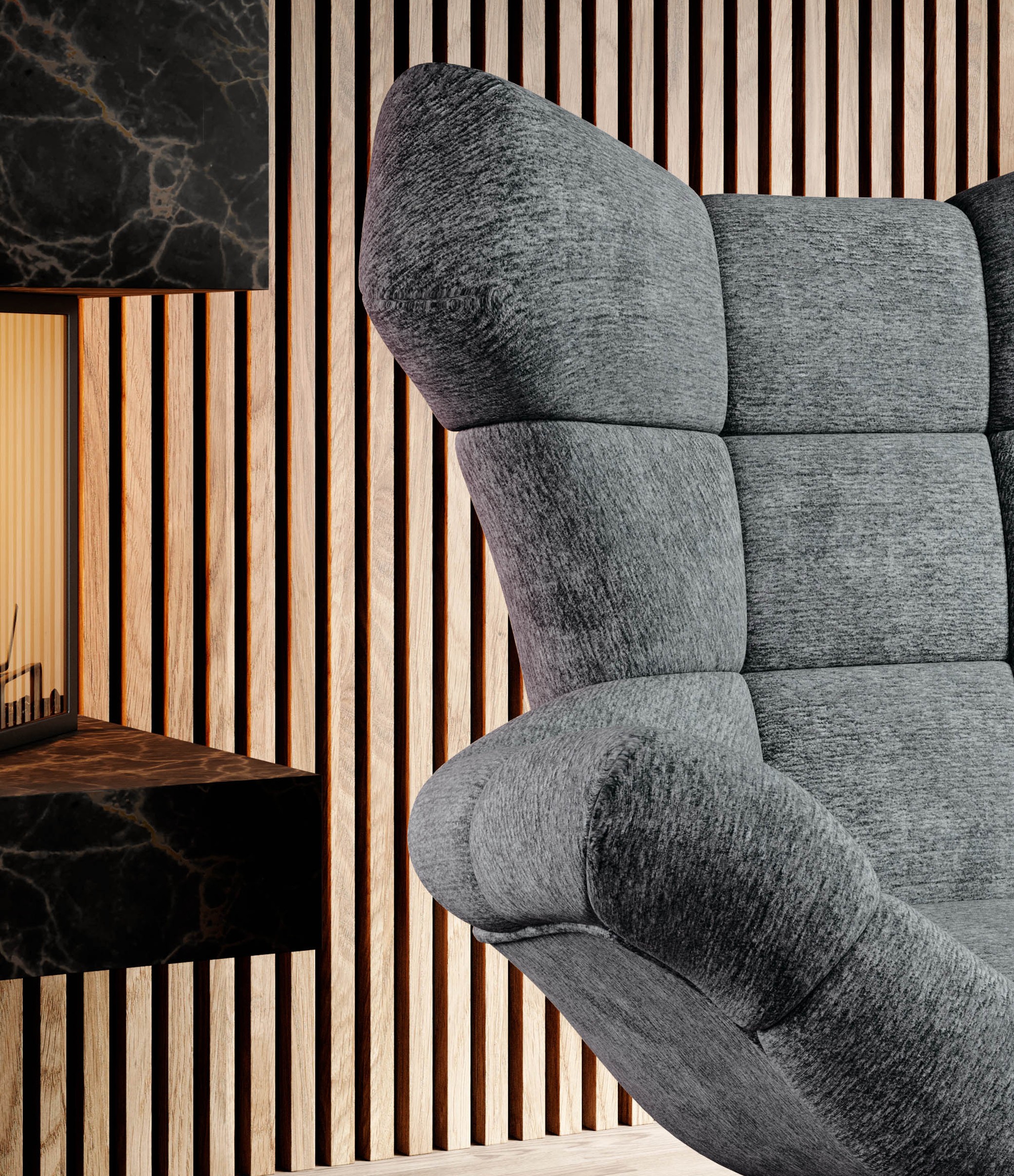 Zaprojektowany z myślą o pełnym relaksie, zachwyca szerokim, wygodnym siedziskiem oraz wysokim, otulającym oparciem, które gwarantują idealne podparcie i uczucie odprężenia.