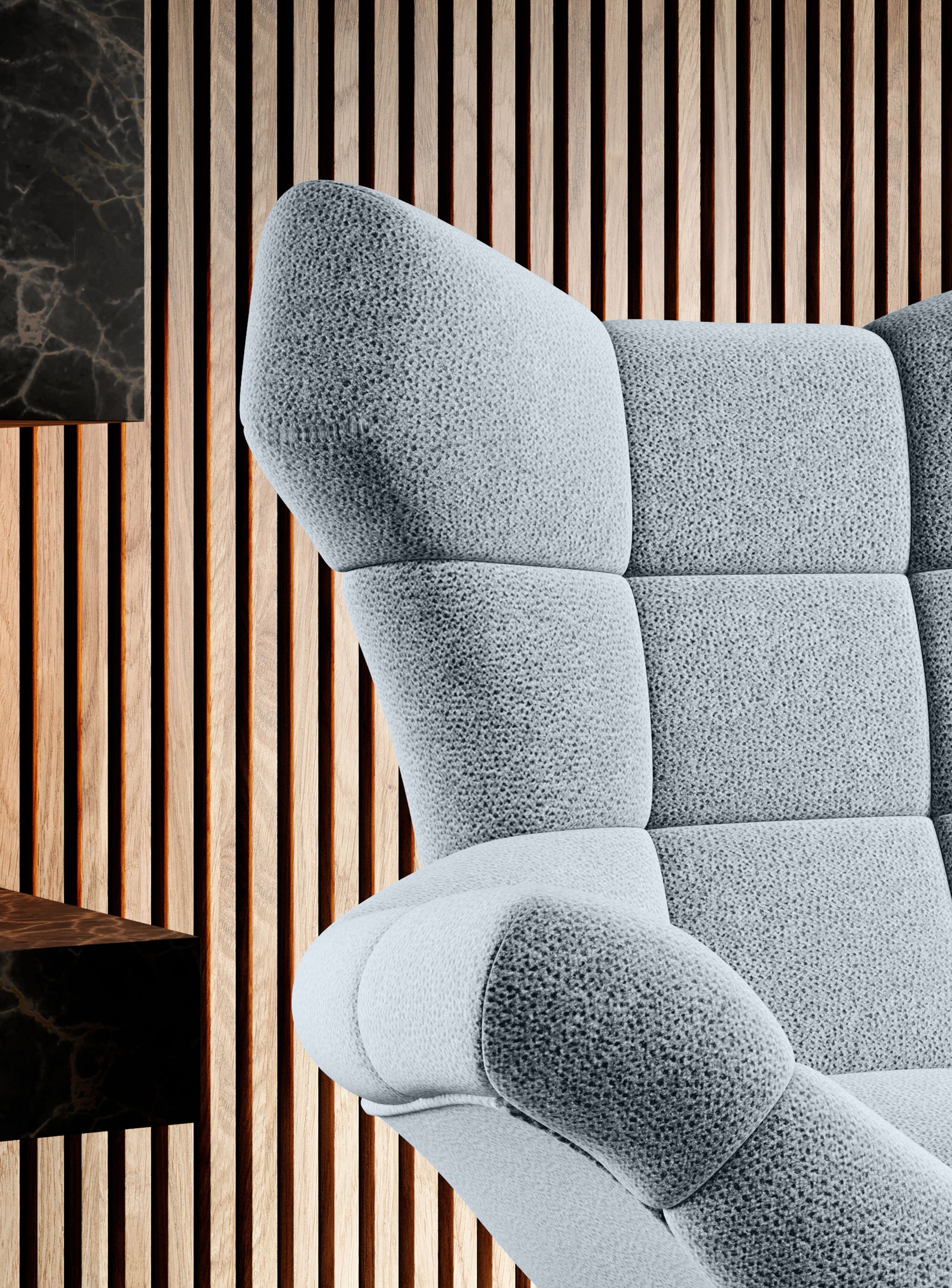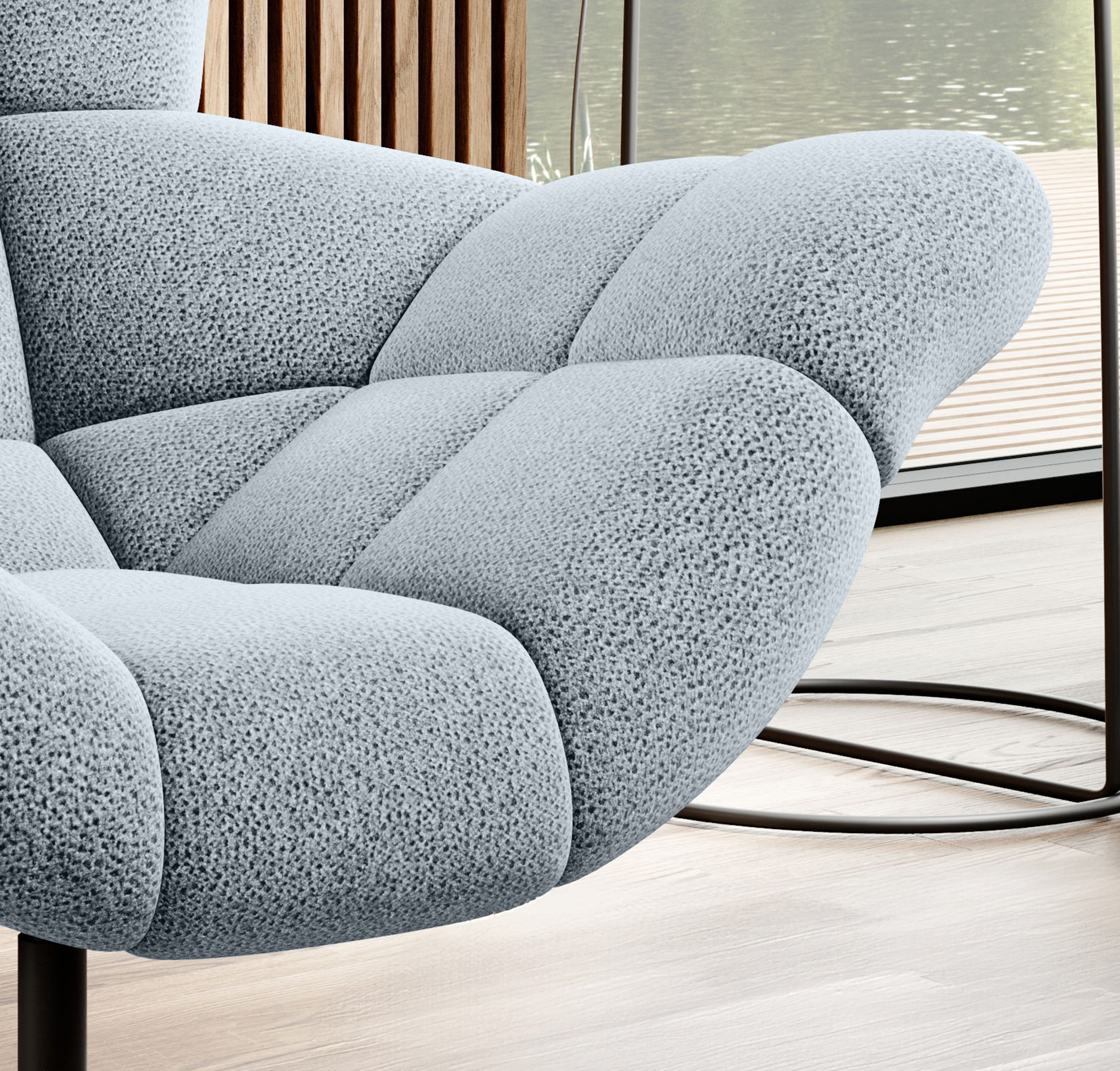Dostępność szerokiej gamy tkanin i kolorów umożliwia dopasowanie fotela do stylu wnętrza, a dedykowany puf SENSI (sprzedawany osobno) stanowi jego idealne uzupełnienie.