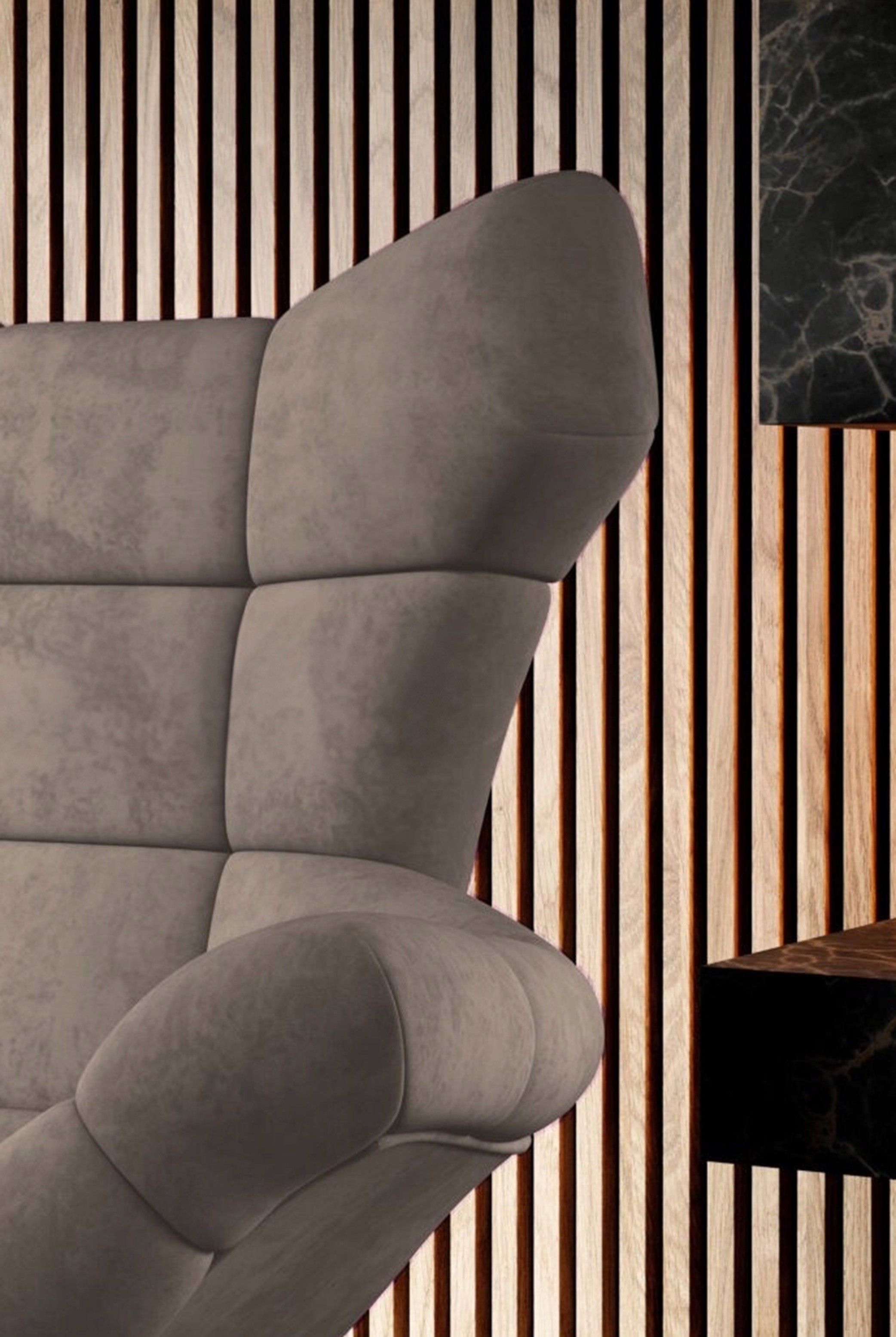Zaprojektowany z myślą o pełnym relaksie, zachwyca szerokim, wygodnym siedziskiem oraz wysokim, otulającym oparciem, które gwarantują idealne podparcie i uczucie odprężenia.