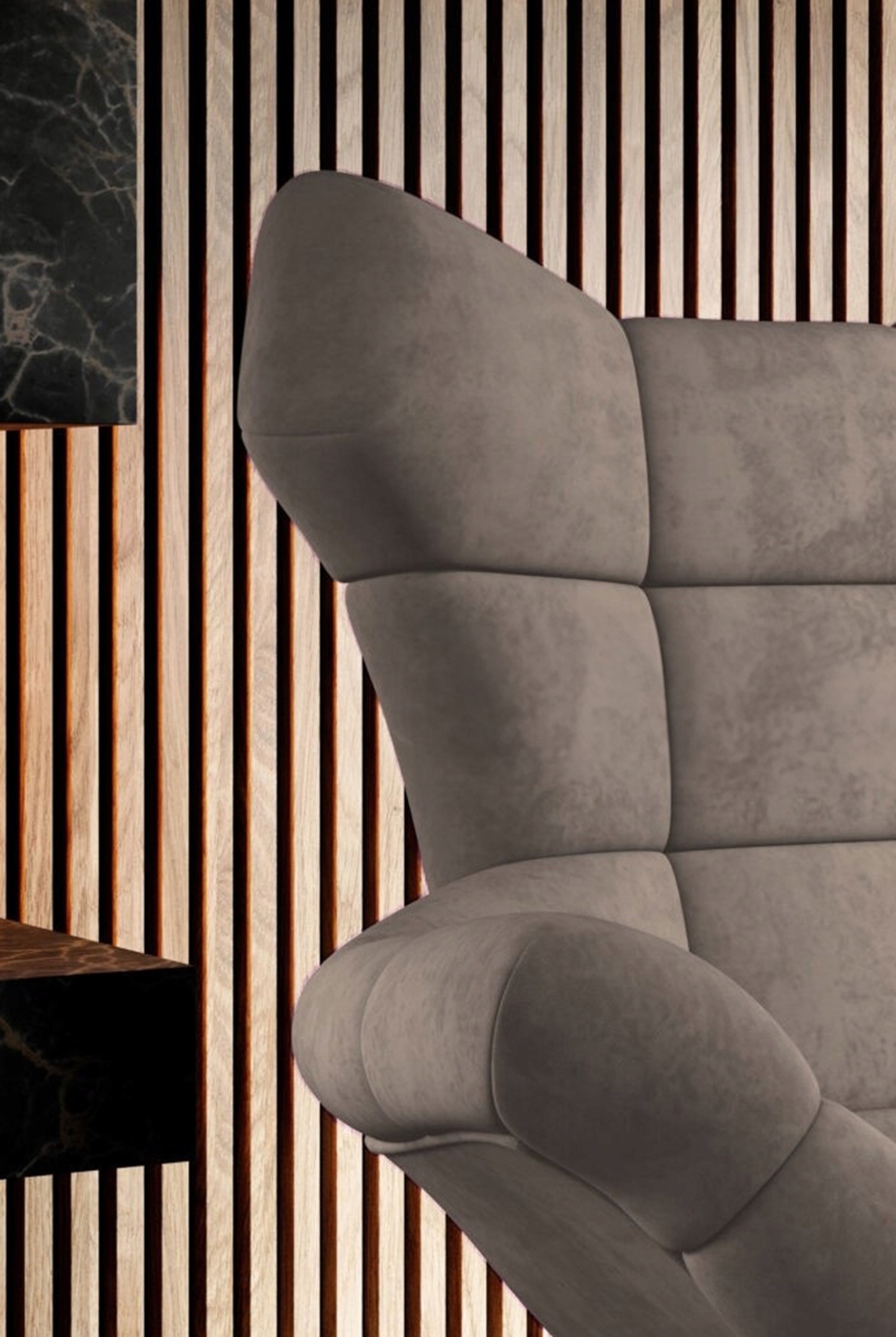 Nowoczesna forma z geometrycznymi przeszyciami nadaje fotelowi wyrazisty charakter, a jego elegancki design sprawia, że doskonale prezentuje się w każdym wnętrzu – od salonu, przez biuro, po sypialnię.