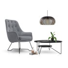 Trwała konstrukcja z włókna szklanego i sklejki w połączeniu z metalowymi nóżkami tworzy spójną całość o nowoczesnym, eleganckim charakterze.