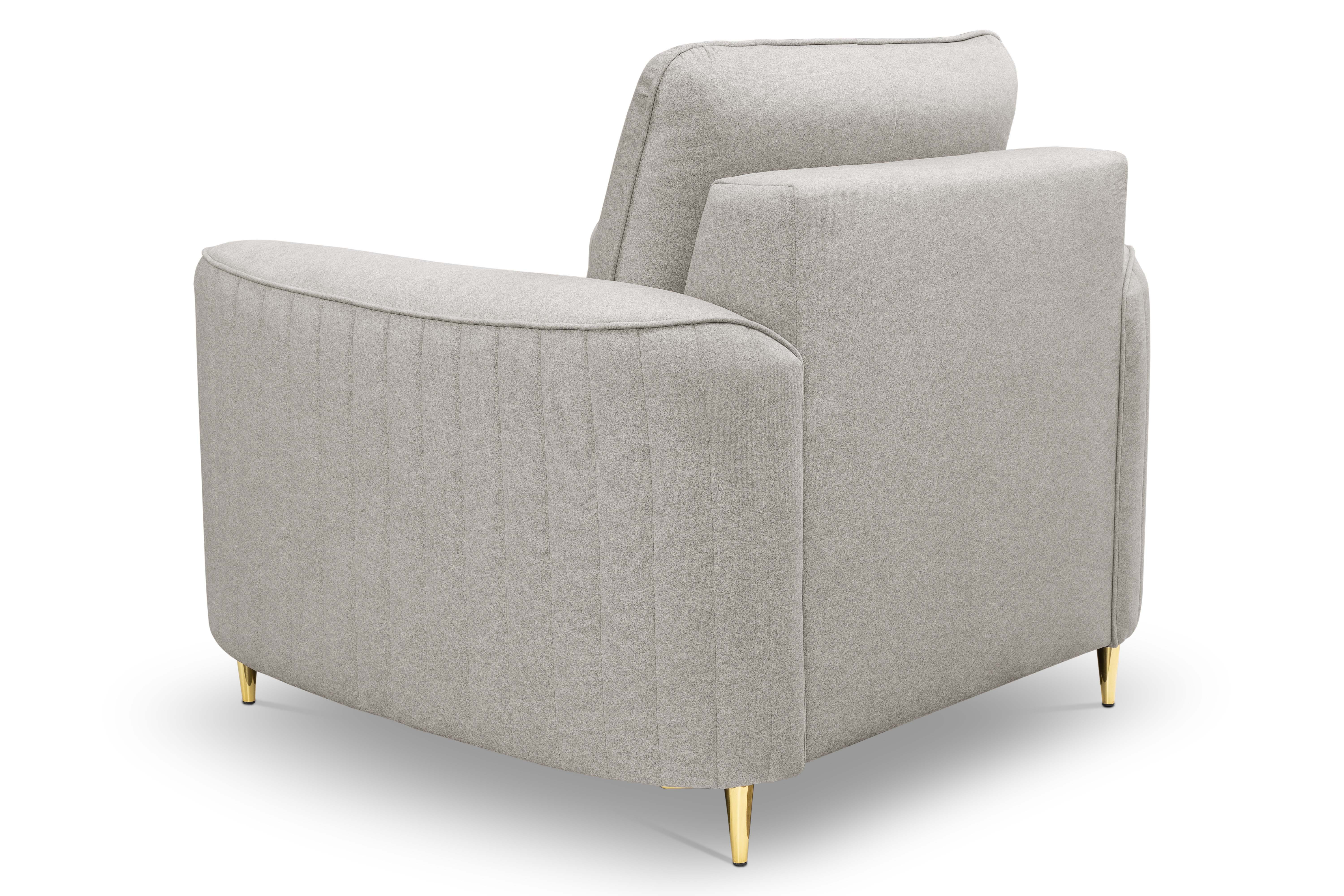 Fotel wyposażony jest w metalowe nóżki, które podkreślają jego nowoczesny charakter, a w pełni tapicerowany tył pozwala ustawić mebel w dowolnym miejscu pomieszczenia – również w jego centralnej części.