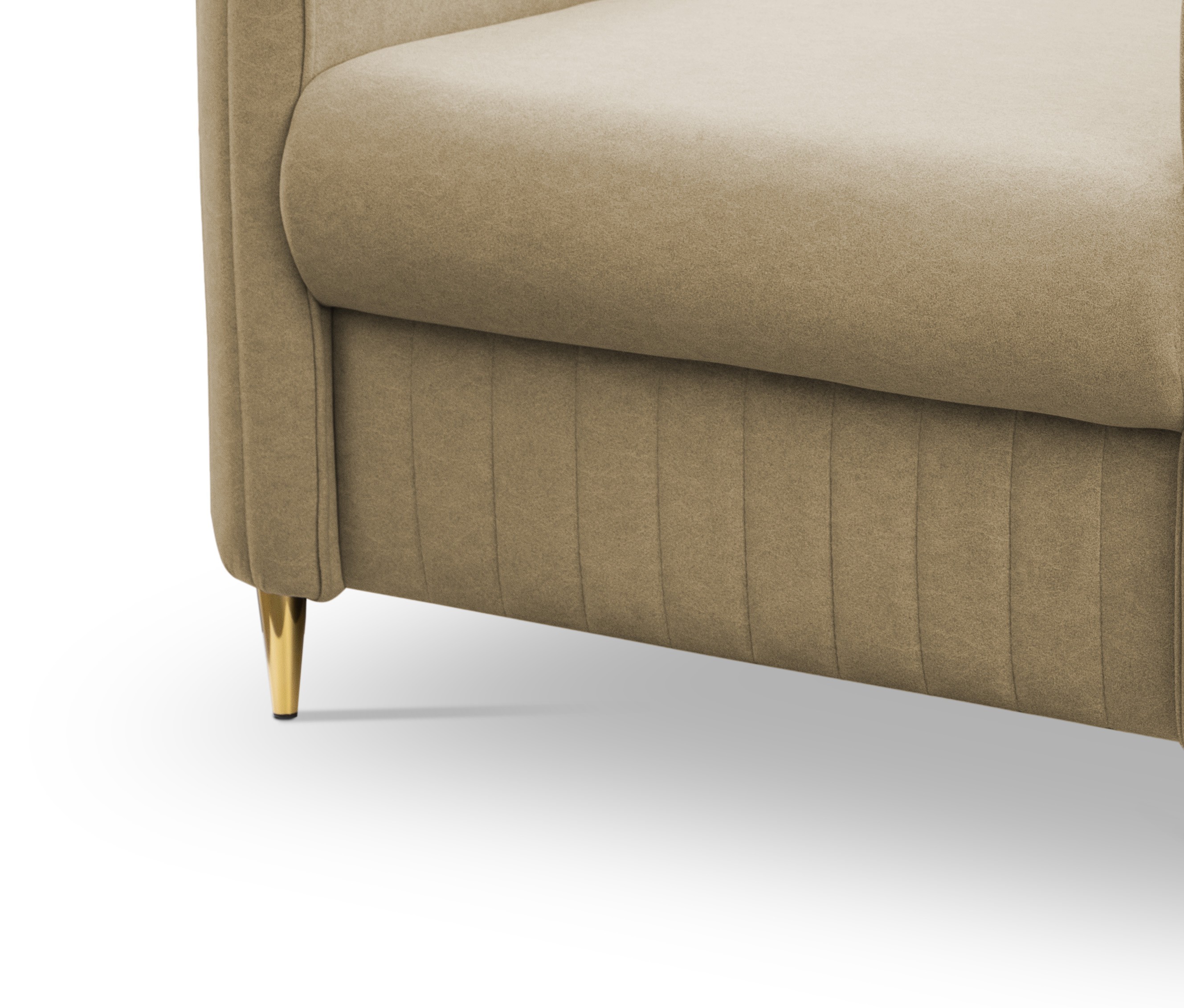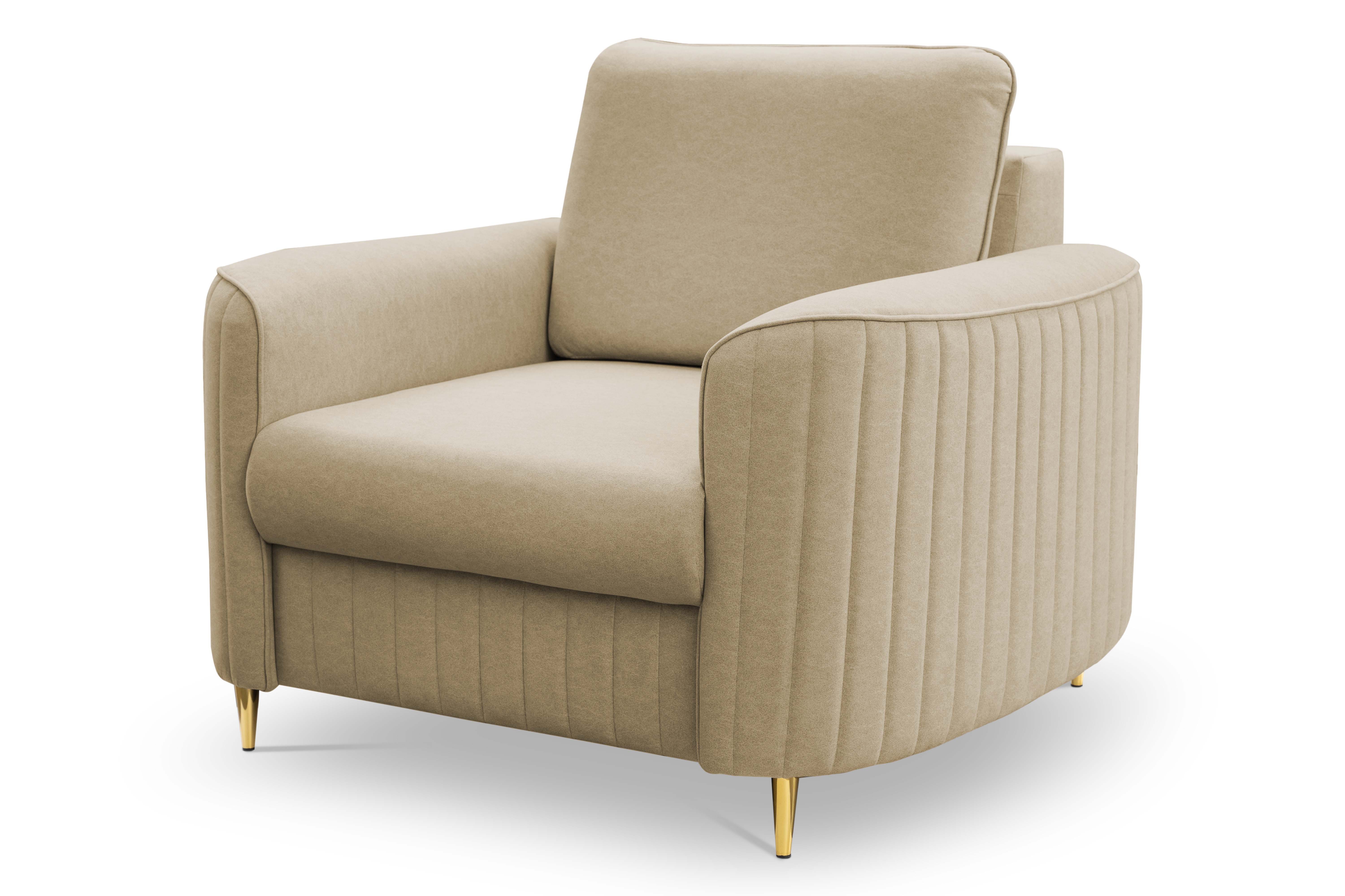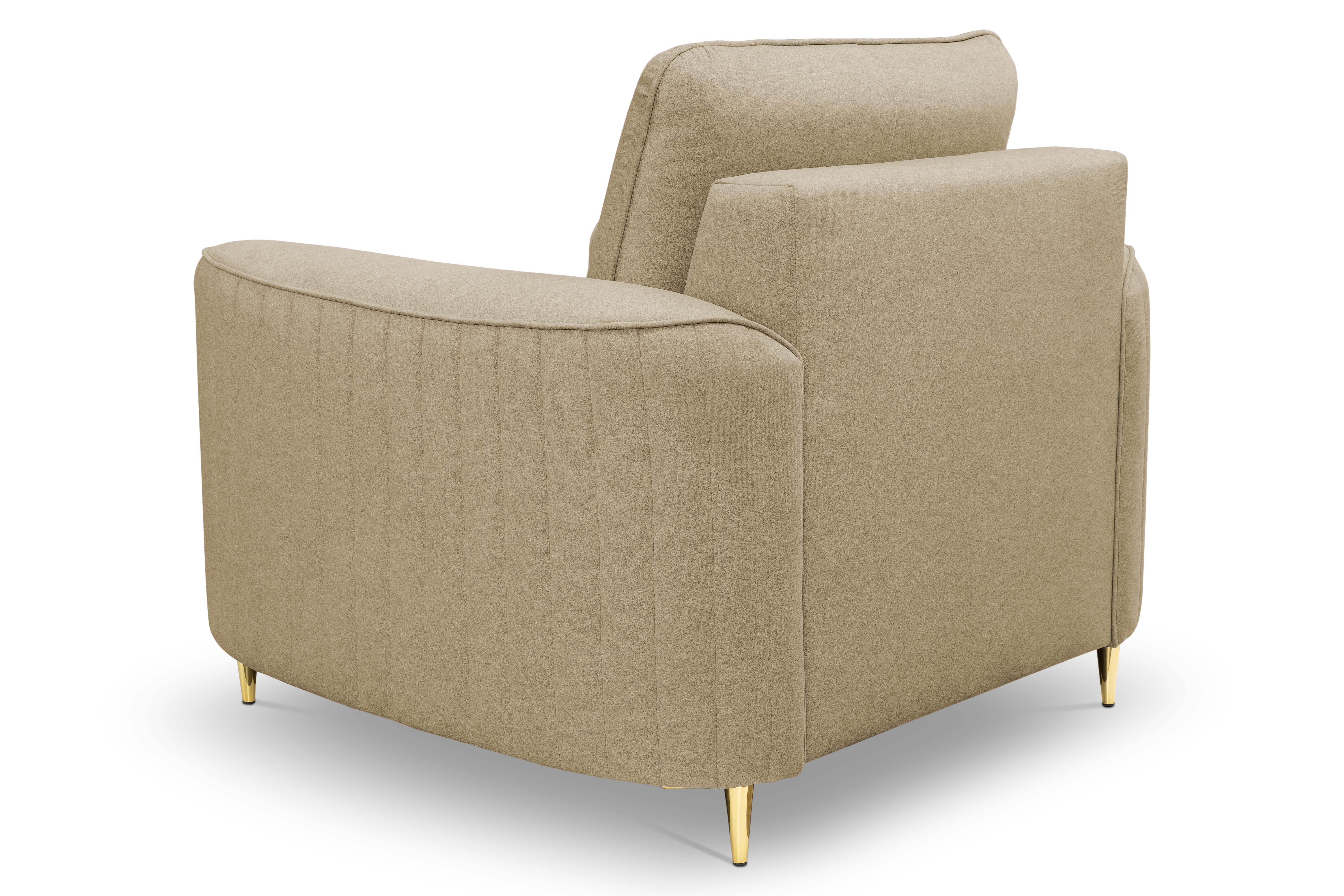 Fotel wyposażony jest w metalowe nóżki, które podkreślają jego nowoczesny charakter, a w pełni tapicerowany tył pozwala ustawić mebel w dowolnym miejscu pomieszczenia – również w jego centralnej części.