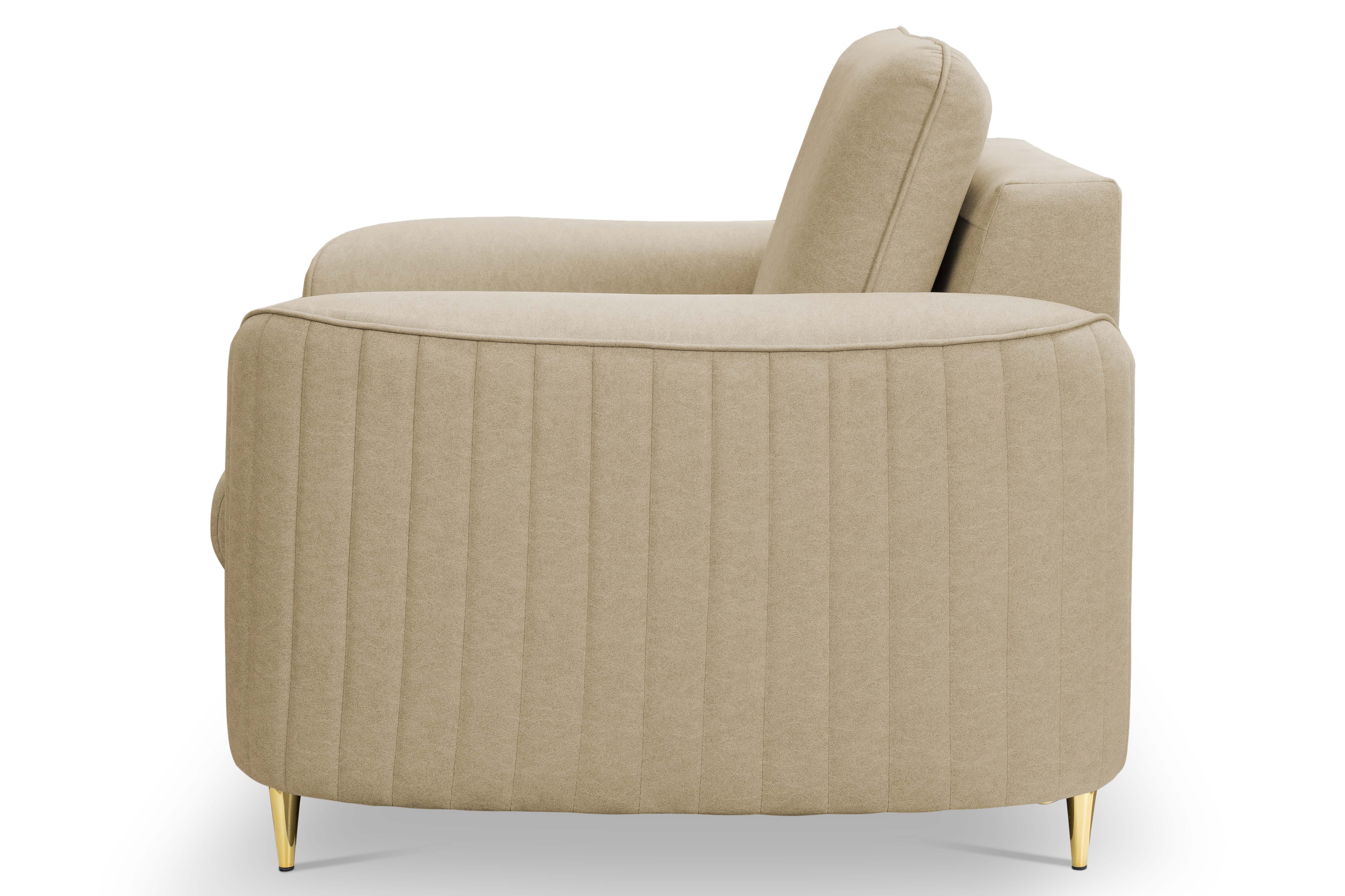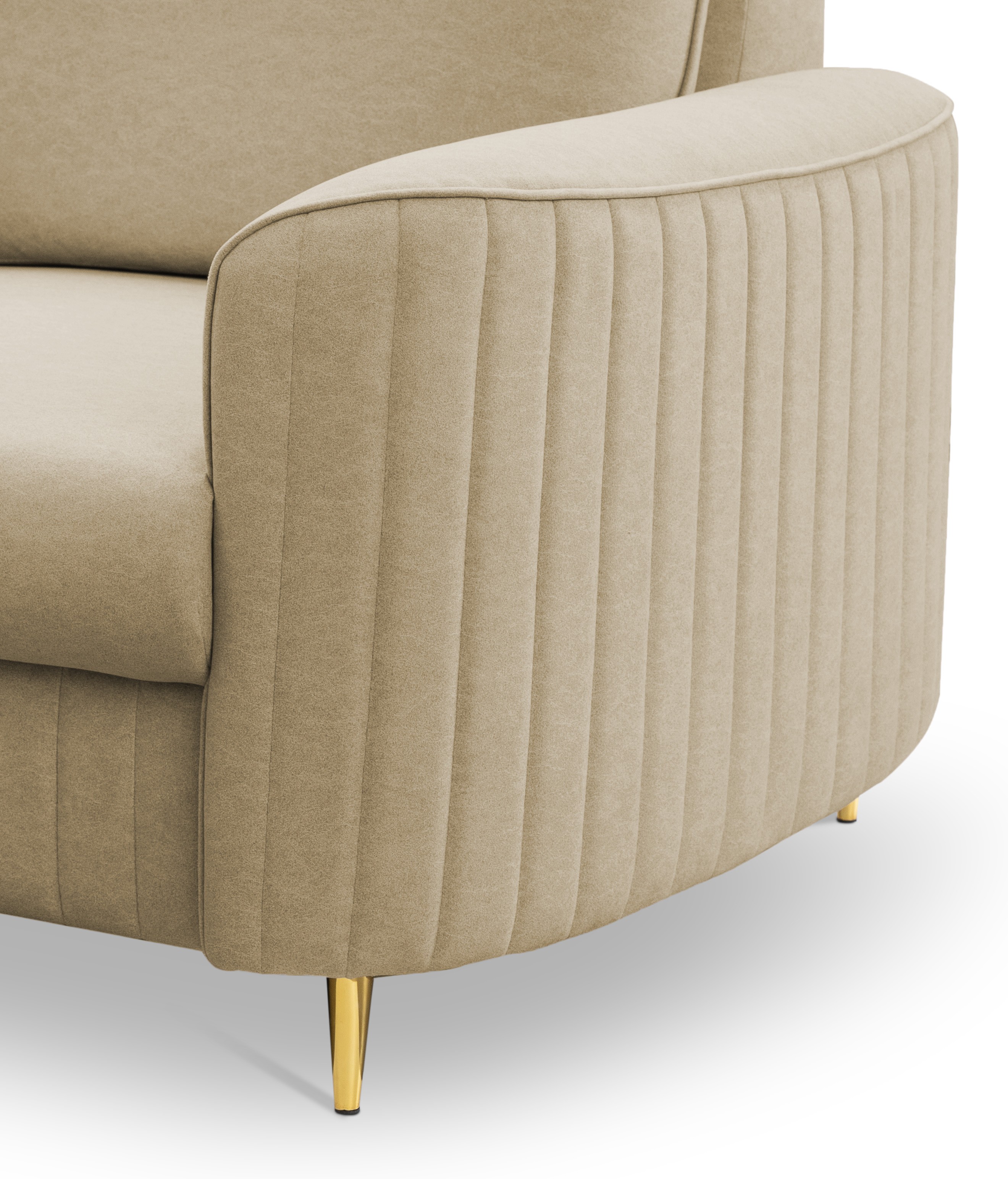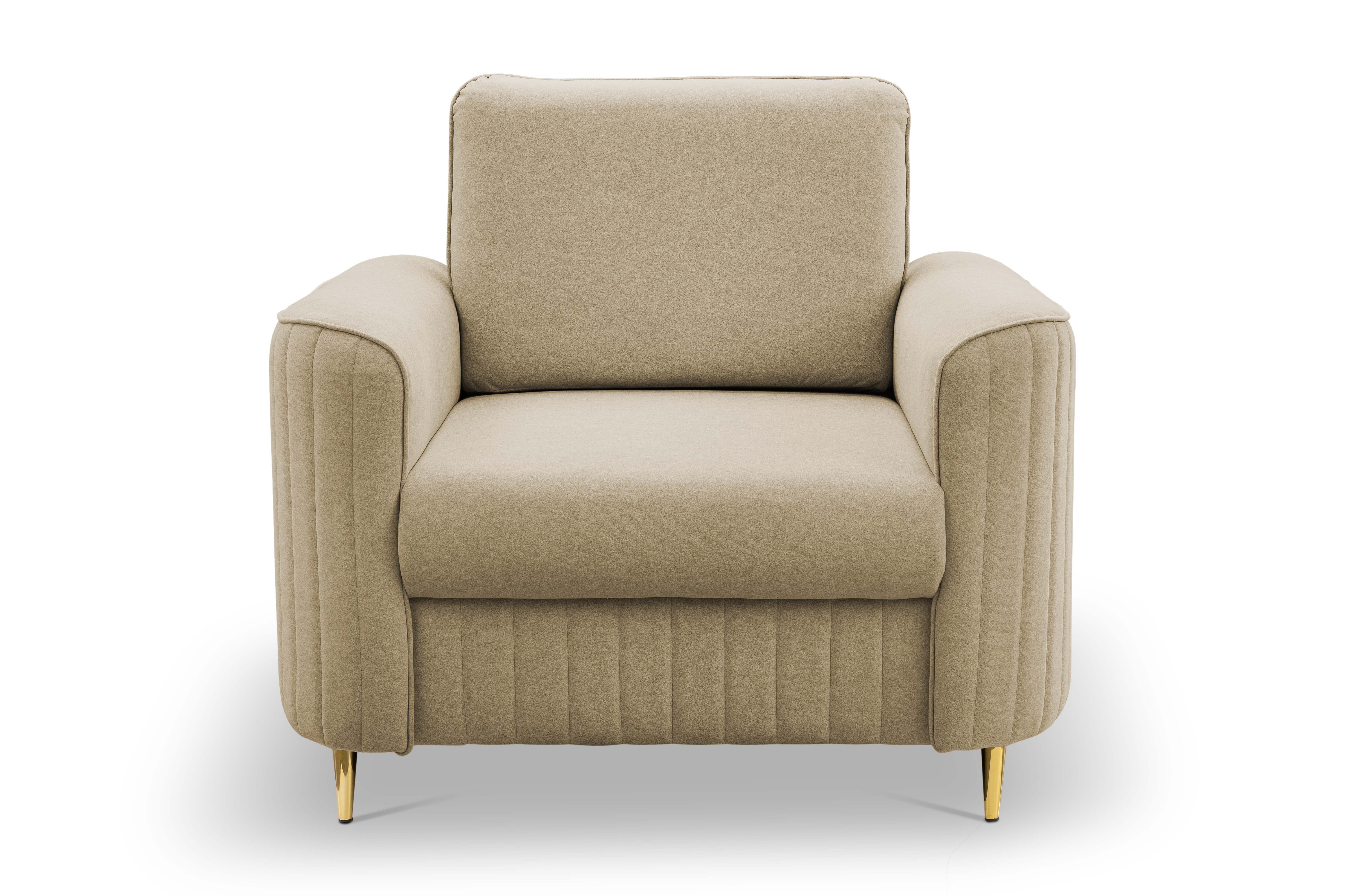 Fotel wyposażony jest w metalowe nóżki, które podkreślają jego nowoczesny charakter, a w pełni tapicerowany tył pozwala ustawić mebel w dowolnym miejscu pomieszczenia – również w jego centralnej części.
