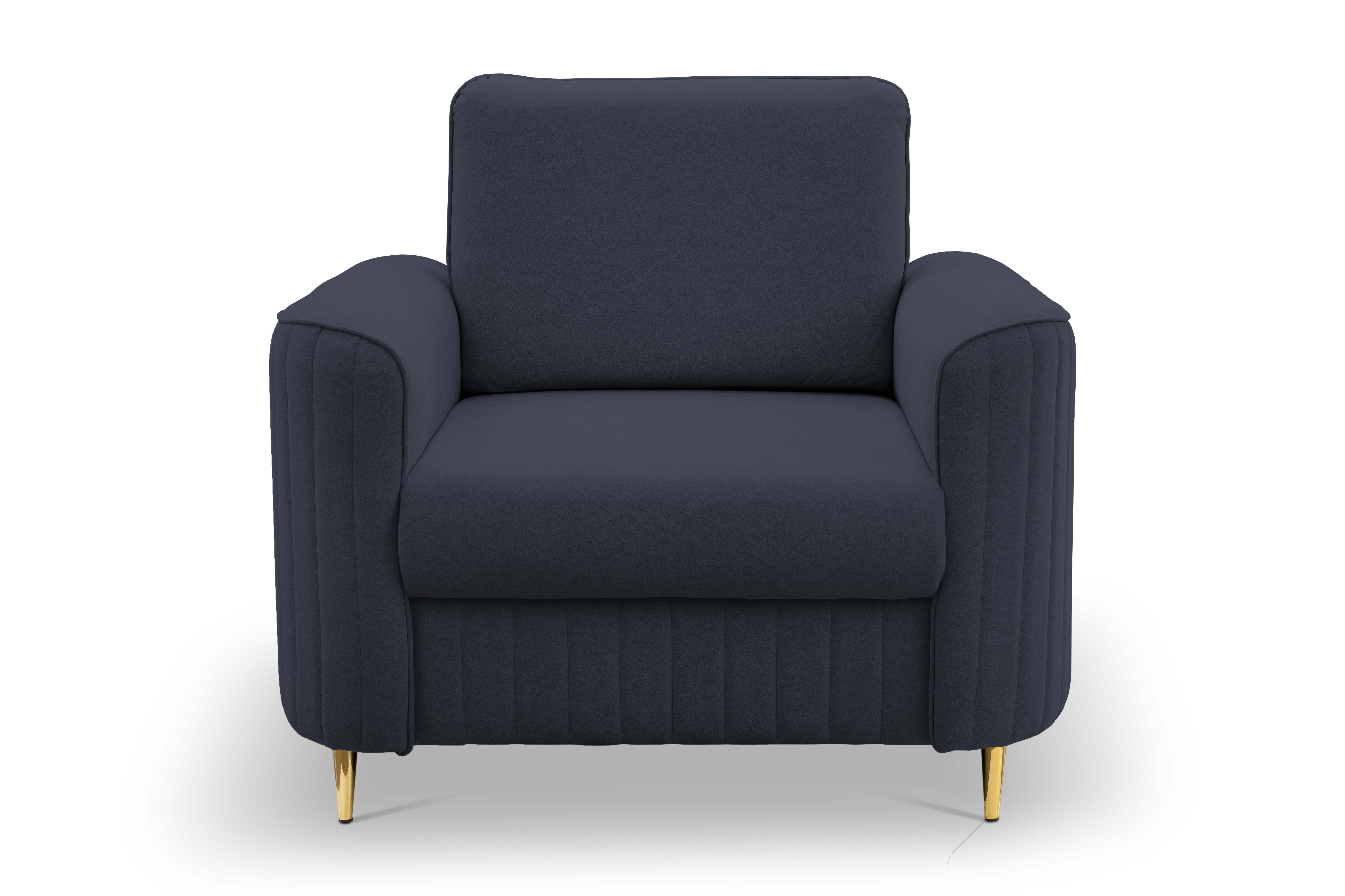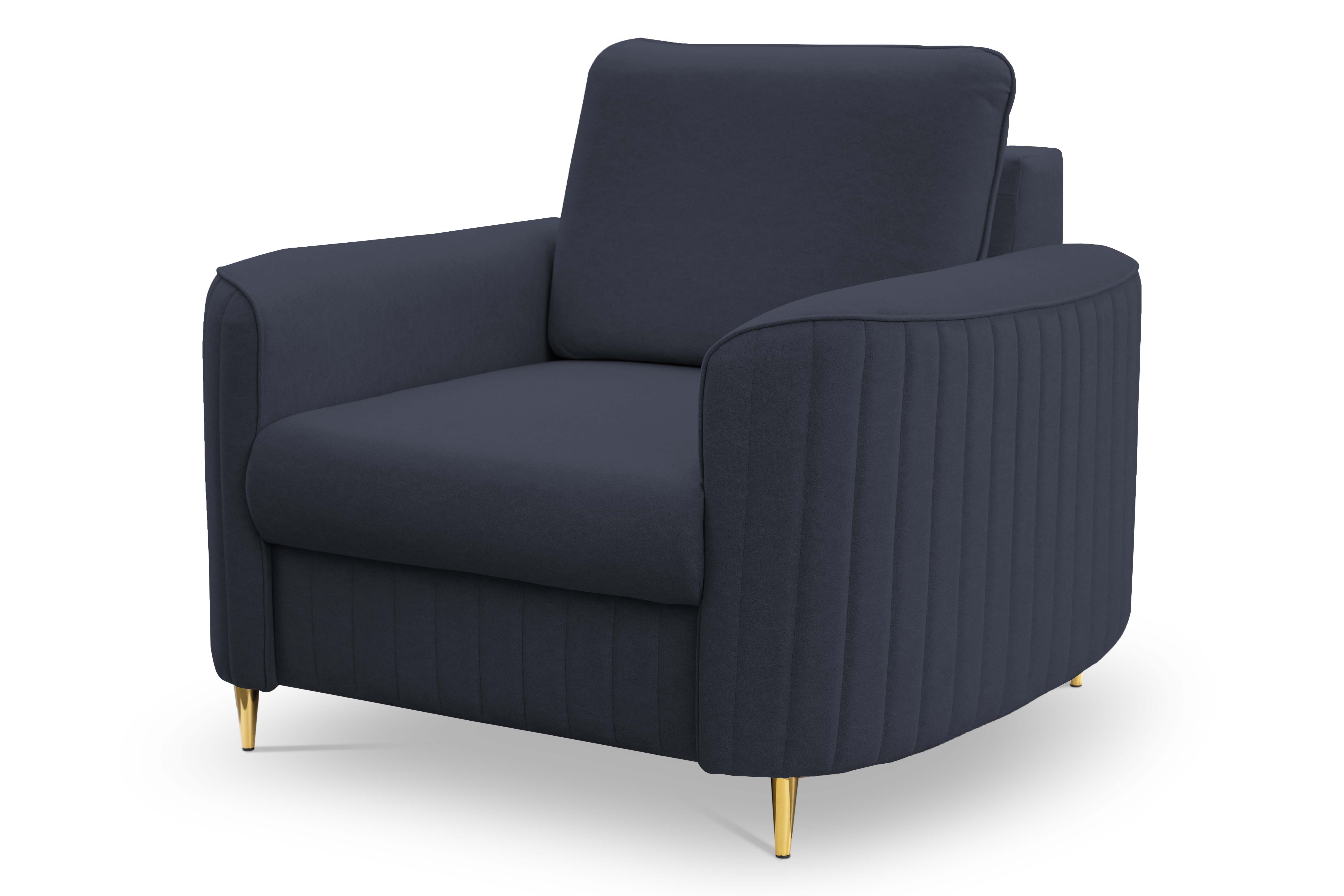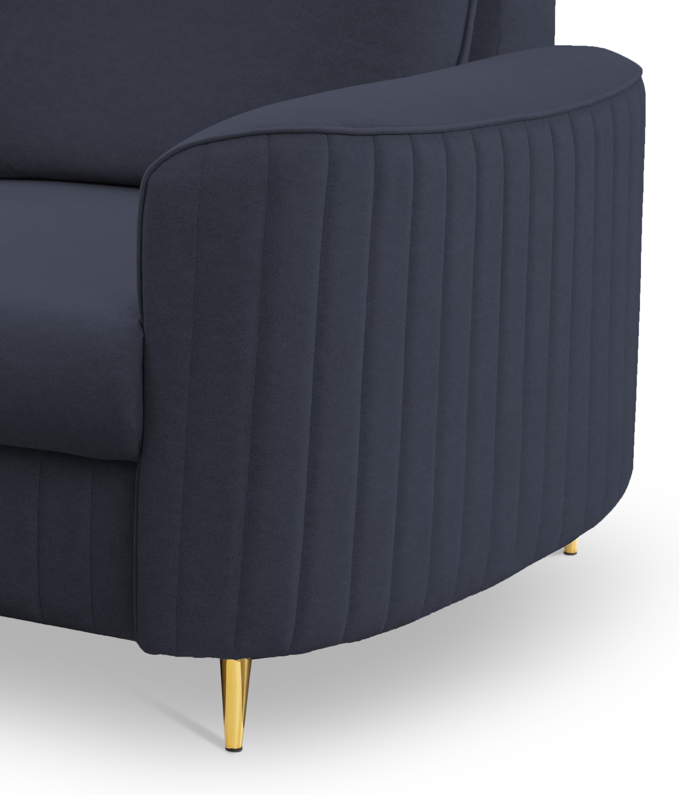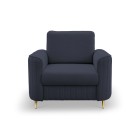 Fotel wyposażony jest w metalowe nóżki, które podkreślają jego nowoczesny charakter, a w pełni tapicerowany tył pozwala ustawić mebel w dowolnym miejscu pomieszczenia – również w jego centralnej części.