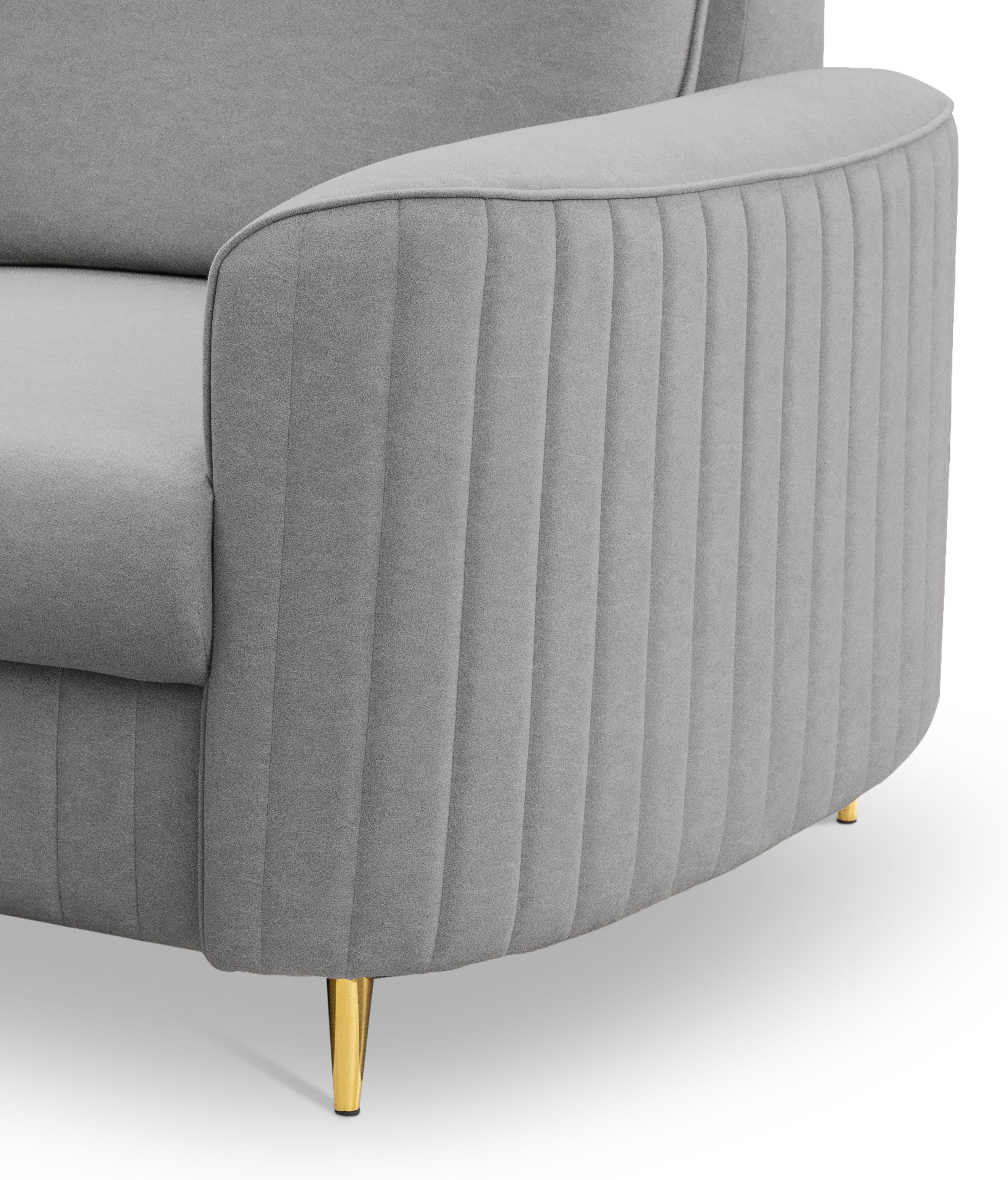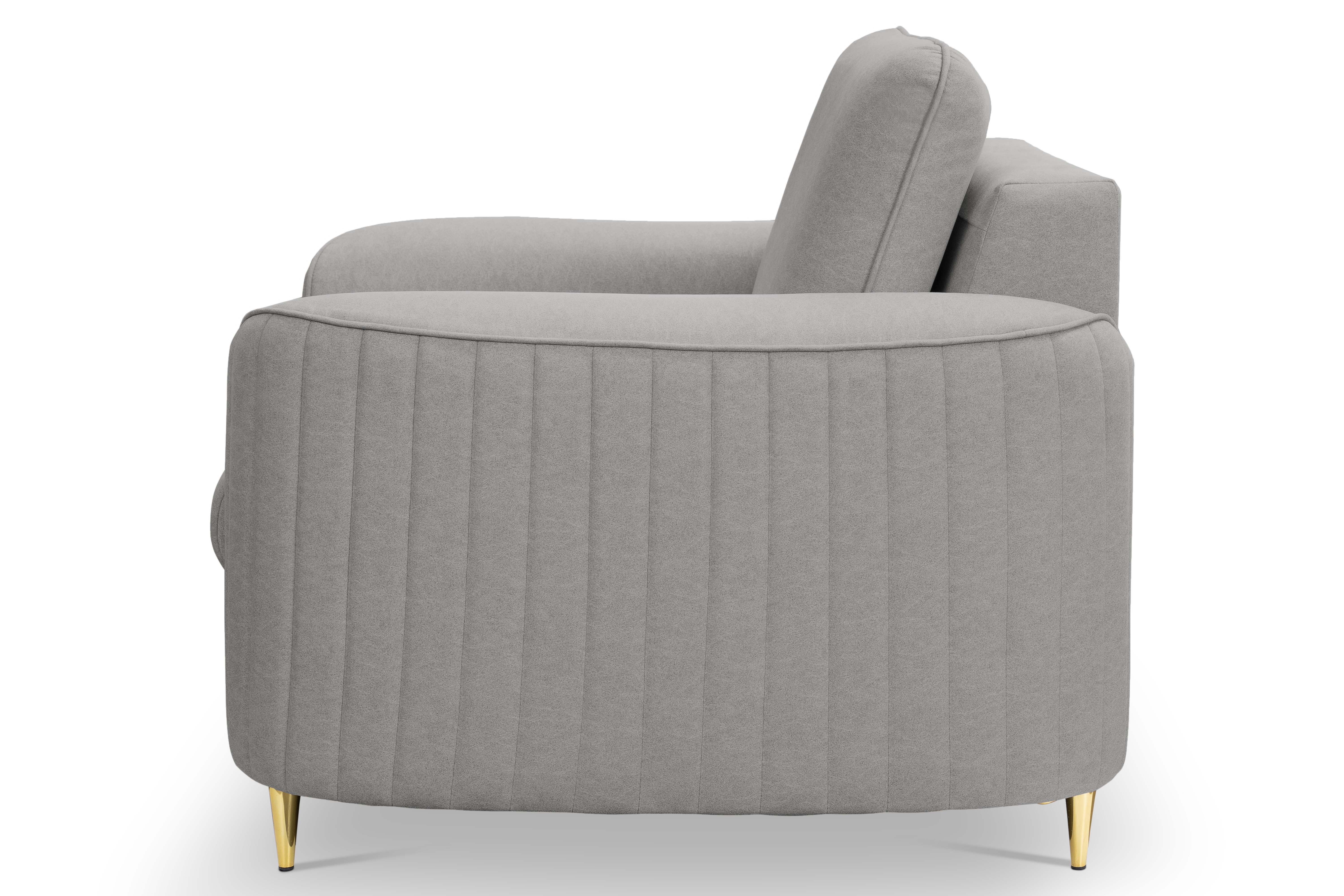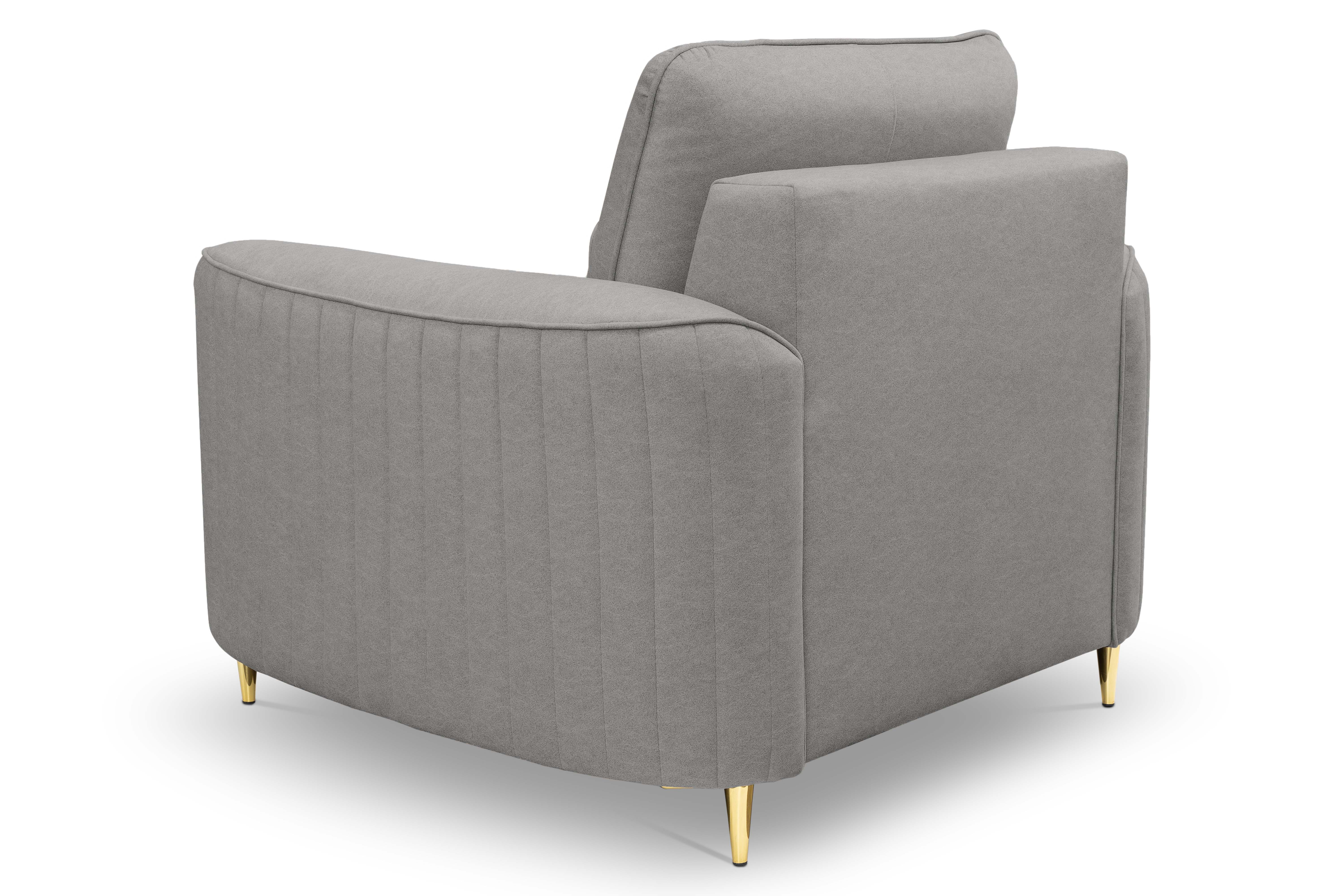 Fotel wyposażony jest w metalowe nóżki, które podkreślają jego nowoczesny charakter, a w pełni tapicerowany tył pozwala ustawić mebel w dowolnym miejscu pomieszczenia – również w jego centralnej części.