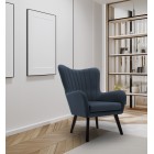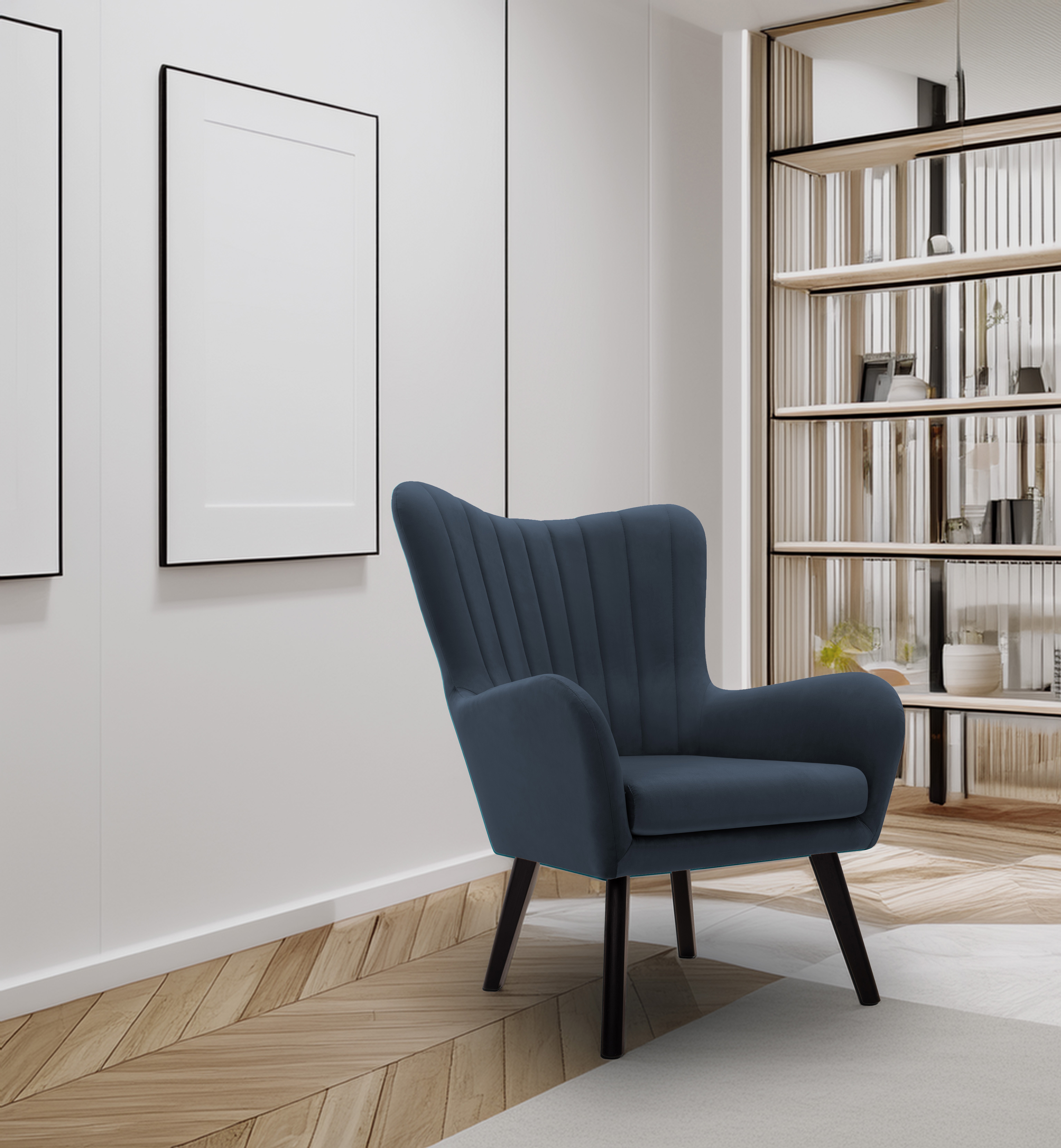 Solidne drewniane nogi w kolorze czarnym zapewniają stabilność i lekkość konstrukcji, a ponadczasowy design fotela pozwala dopasować go do wnętrz nowoczesnych, klasycznych i eklektycznych.