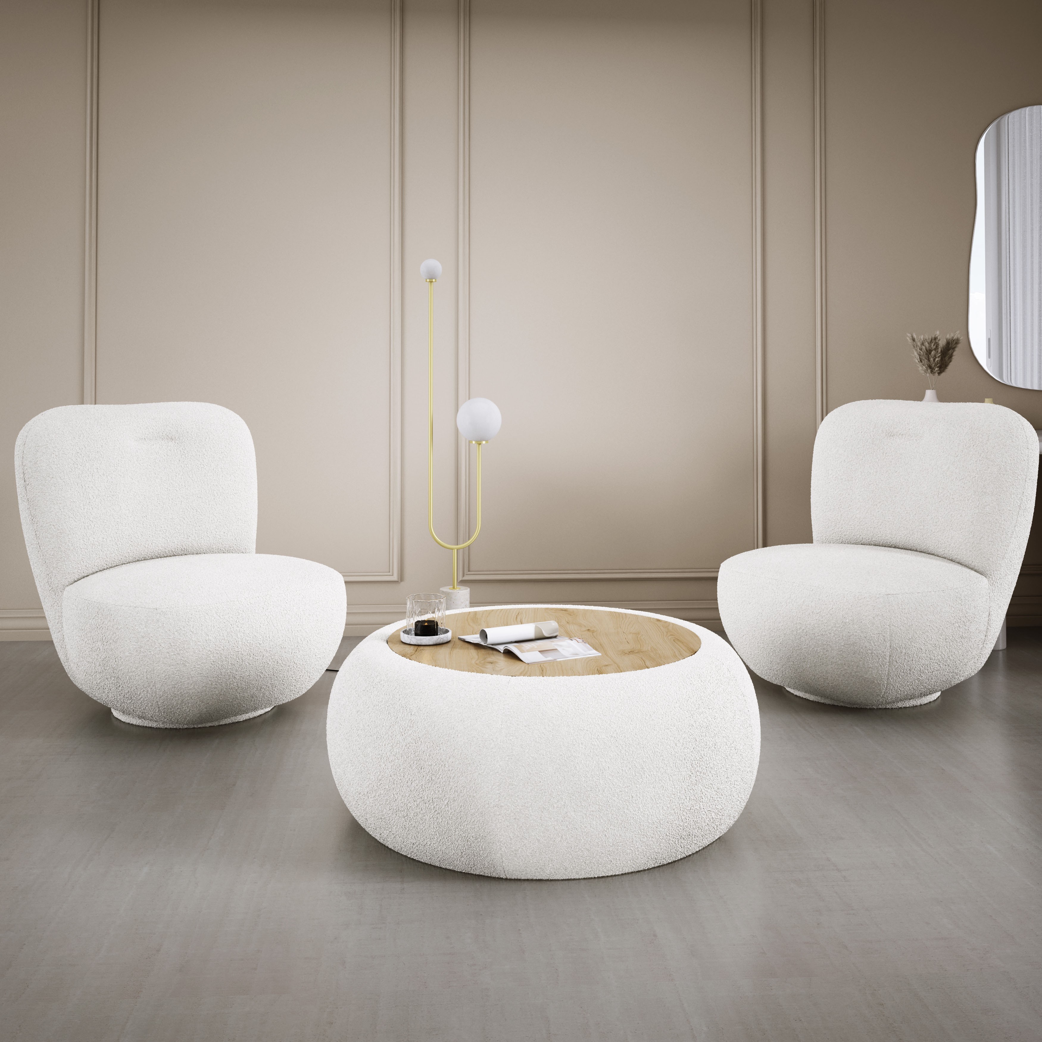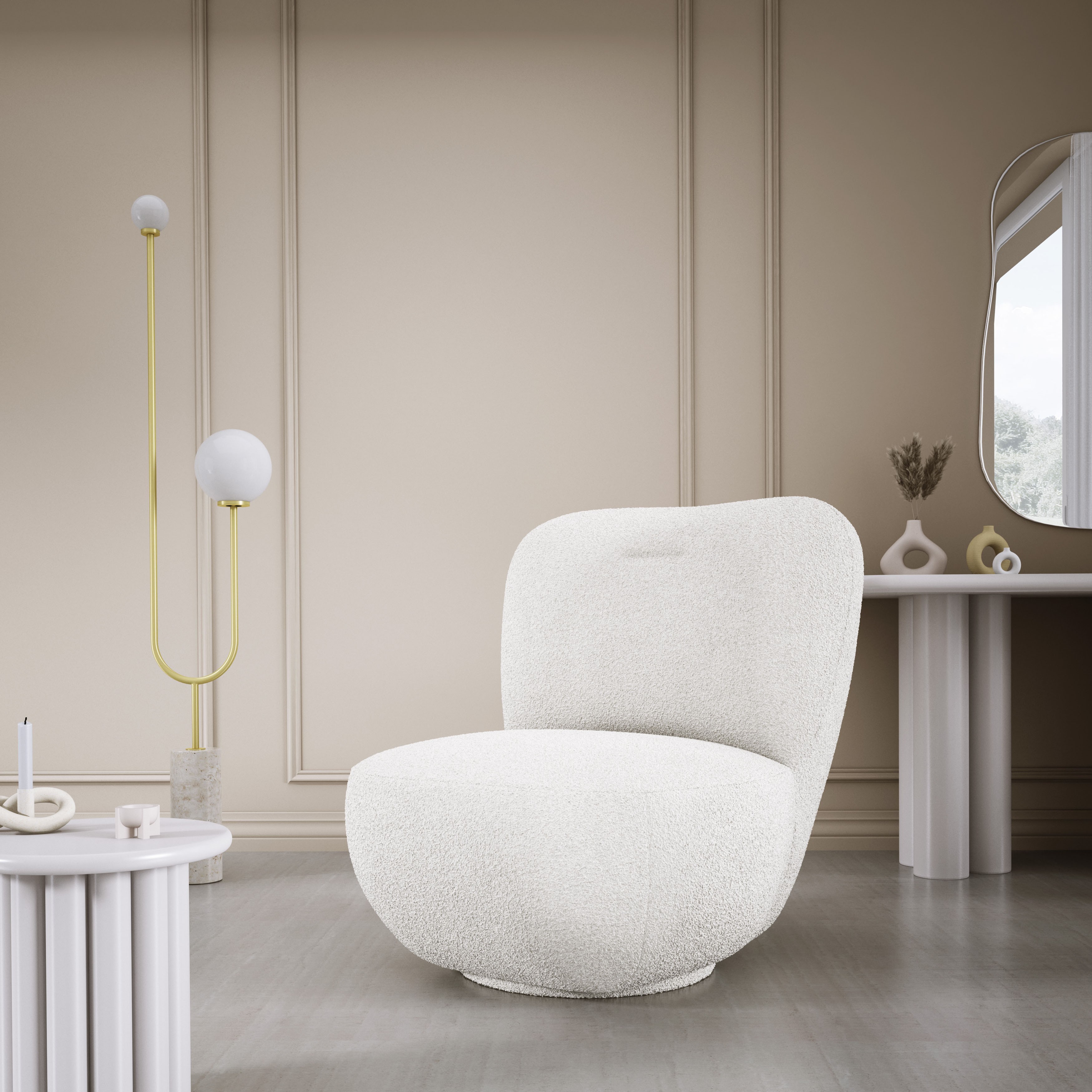 Nowoczesne, organiczne linie fotela oraz subtelna, jasna kolorystyka sprawiają, że LUIS doskonale komponuje się z każdym wnętrzem, wprowadzając przytulną atmosferę i luksusowy akcent.