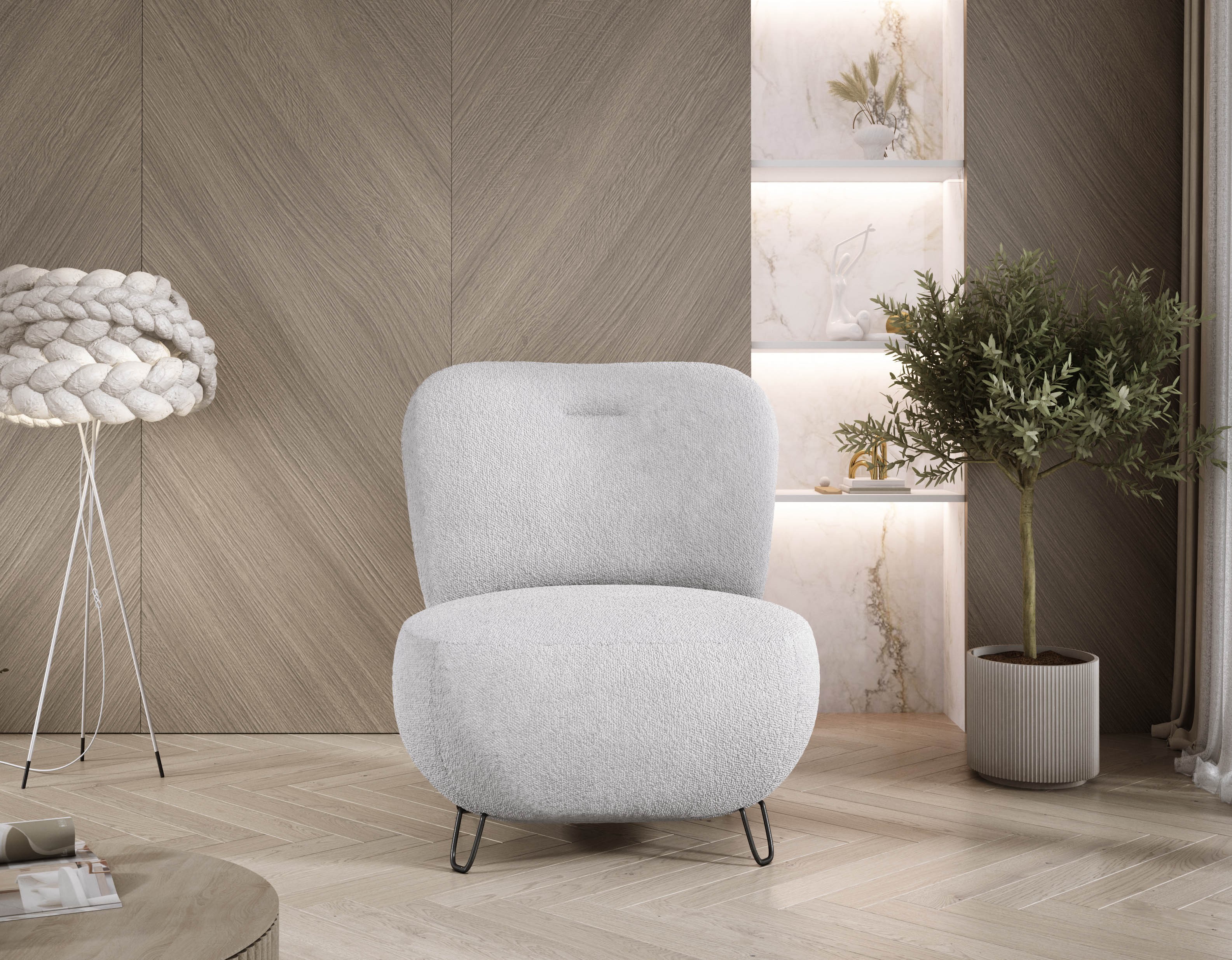 Fotel LUIS skandynawski wolnostojący na metalowych nogach w tkaninie CLOUD 03