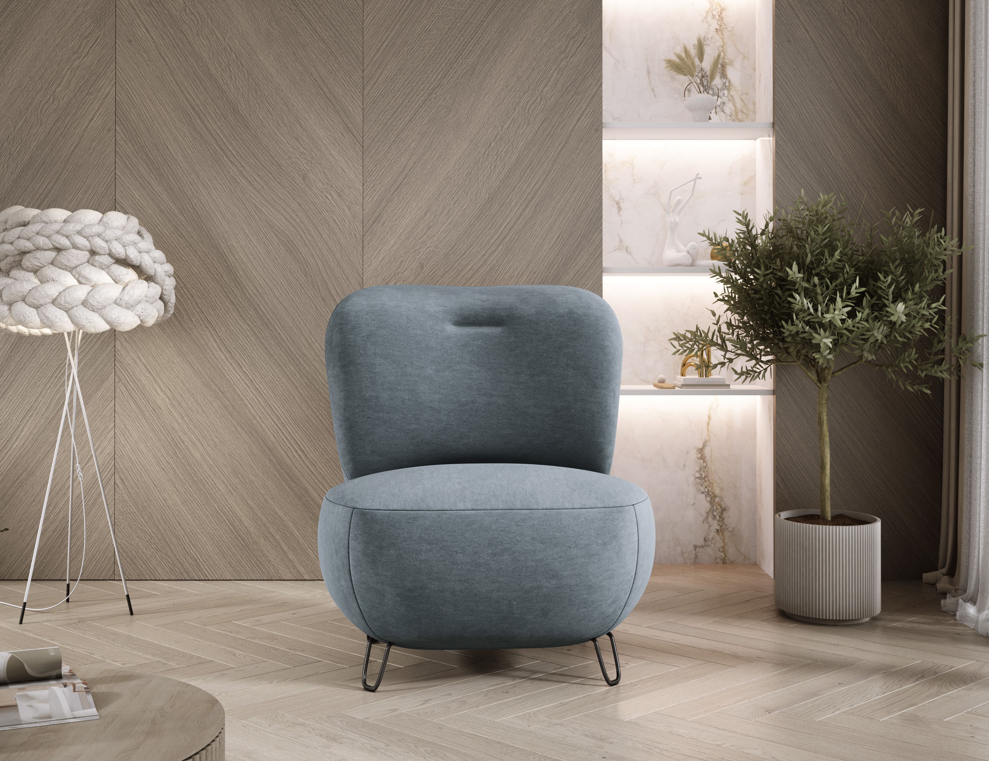 Fotel LUIS skandynawski wolnostojący na metalowych nogach w tkaninie CLOUD 03