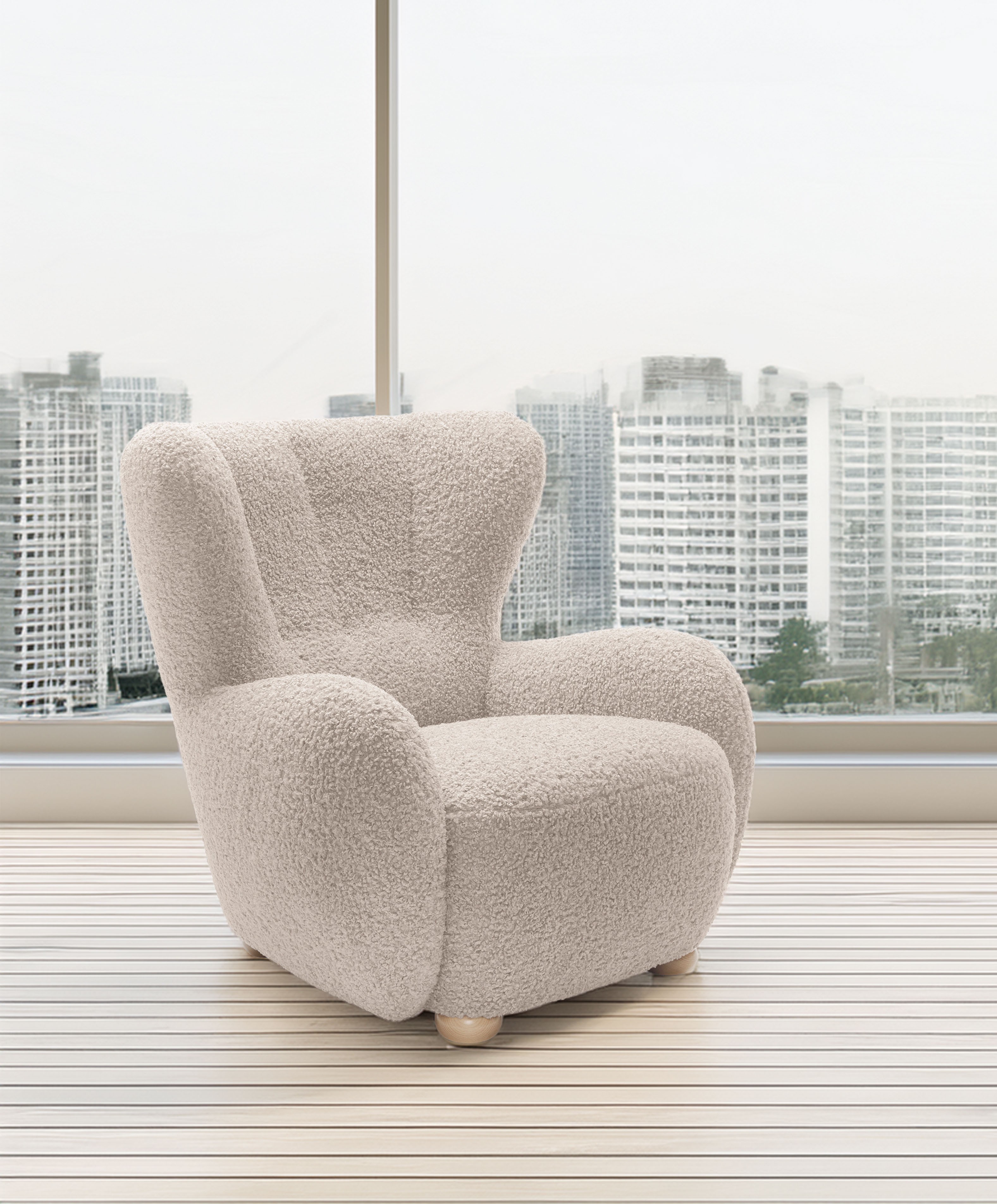 Fotel BOUCLÉ to idealne połączenie funkcjonalności, przytulności i stylu, które stanie się centralnym elementem każdego wnętrza.