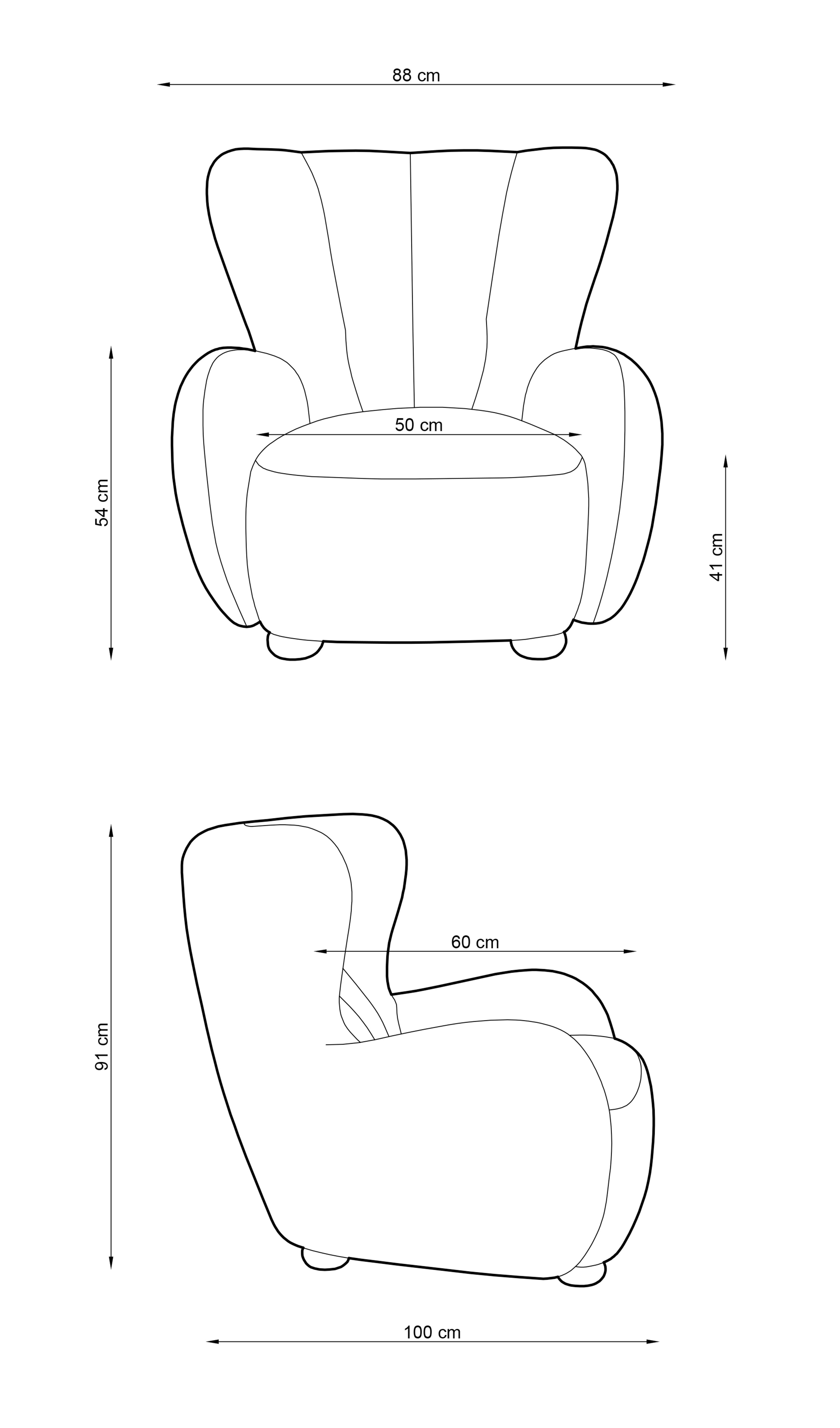 Solidna konstrukcja z płyty wiórowej i sklejki gwarantuje trwałość i stabilność, a okrągłe nóżki z drewna bukowego o wysokości około 4 cm dodają fotelowi eleganckiego charakteru, wpisując się w różnorodne aranżacje – od skandynawskiego po modern classic.