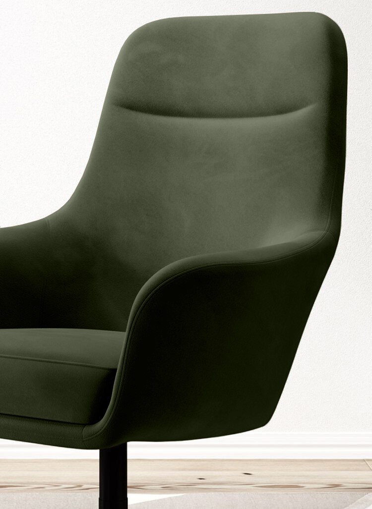 Subtelna forma i obrotowa podstawa sprawiają, że fotel nie tylko świetnie wygląda, ale jest również niezwykle praktyczny i komfortowy w codziennym użytkowaniu.