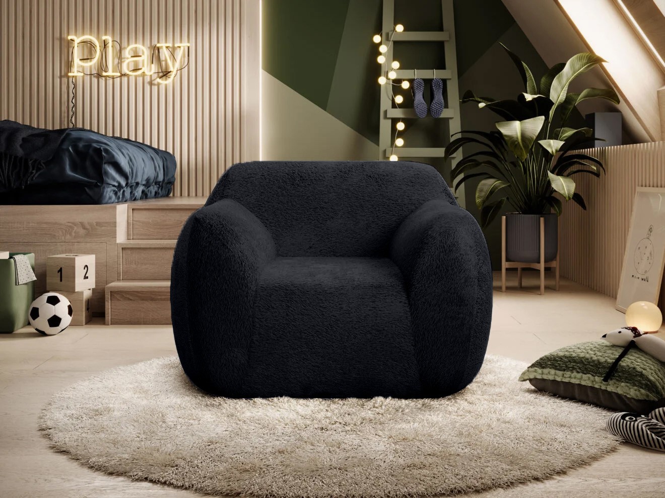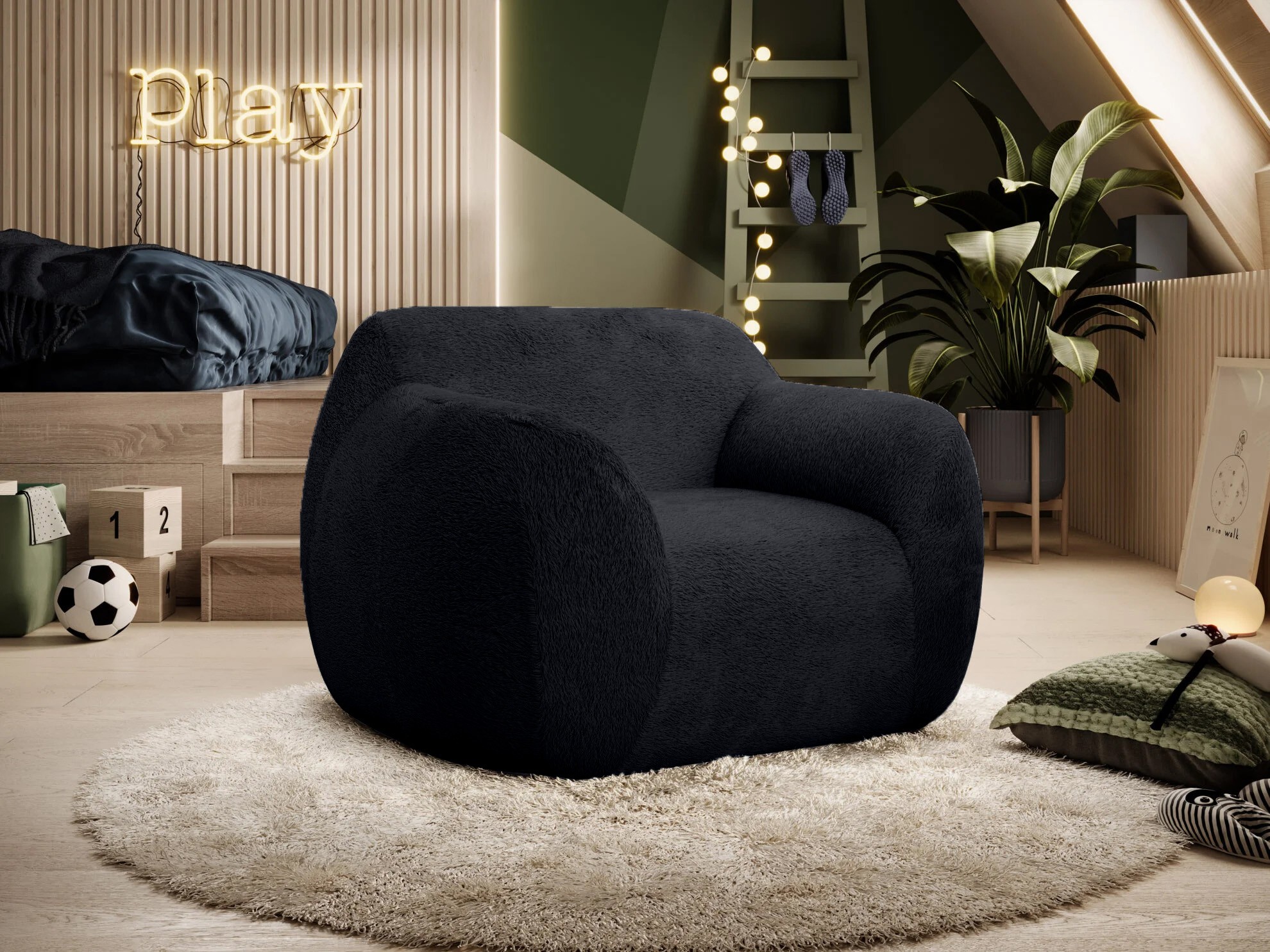 Tkanina obiciowa LOOP została zaprojektowana z myślą o różnorodnych zastosowaniach tapicerskich i dekoracyjnych. Doskonale prezentuje się na miękkich, zakrzywionych meblach – sofach, pufach, fotelach, wersalkach – podkreślając ich kształty i dodając im wizualnej miękkości.