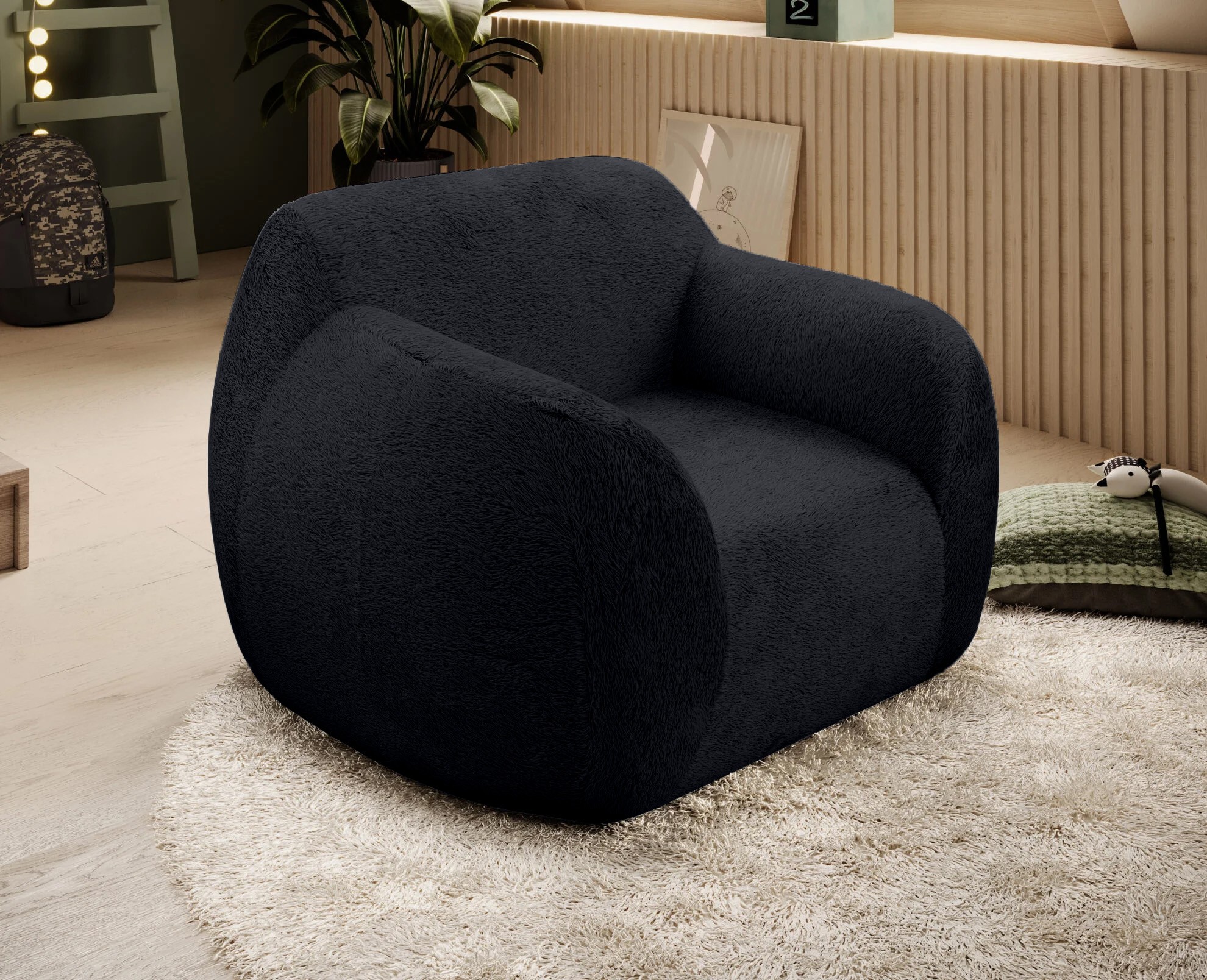 Doskonale komponuje się z obłymi kształtami nowoczesnych mebli, nadając im wyjątkowy charakter. Jej faktura jest niezwykle sprężysta i obfitująca w miękkość.