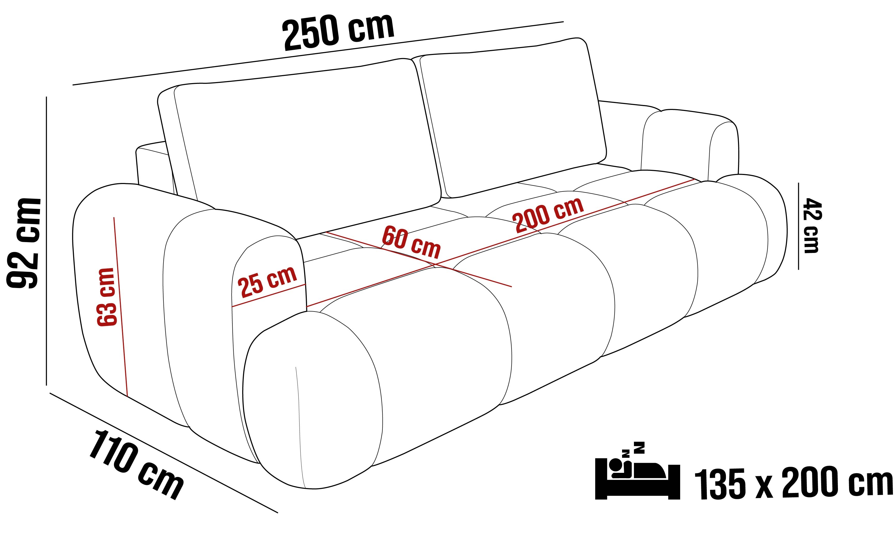 250x110x92 cm