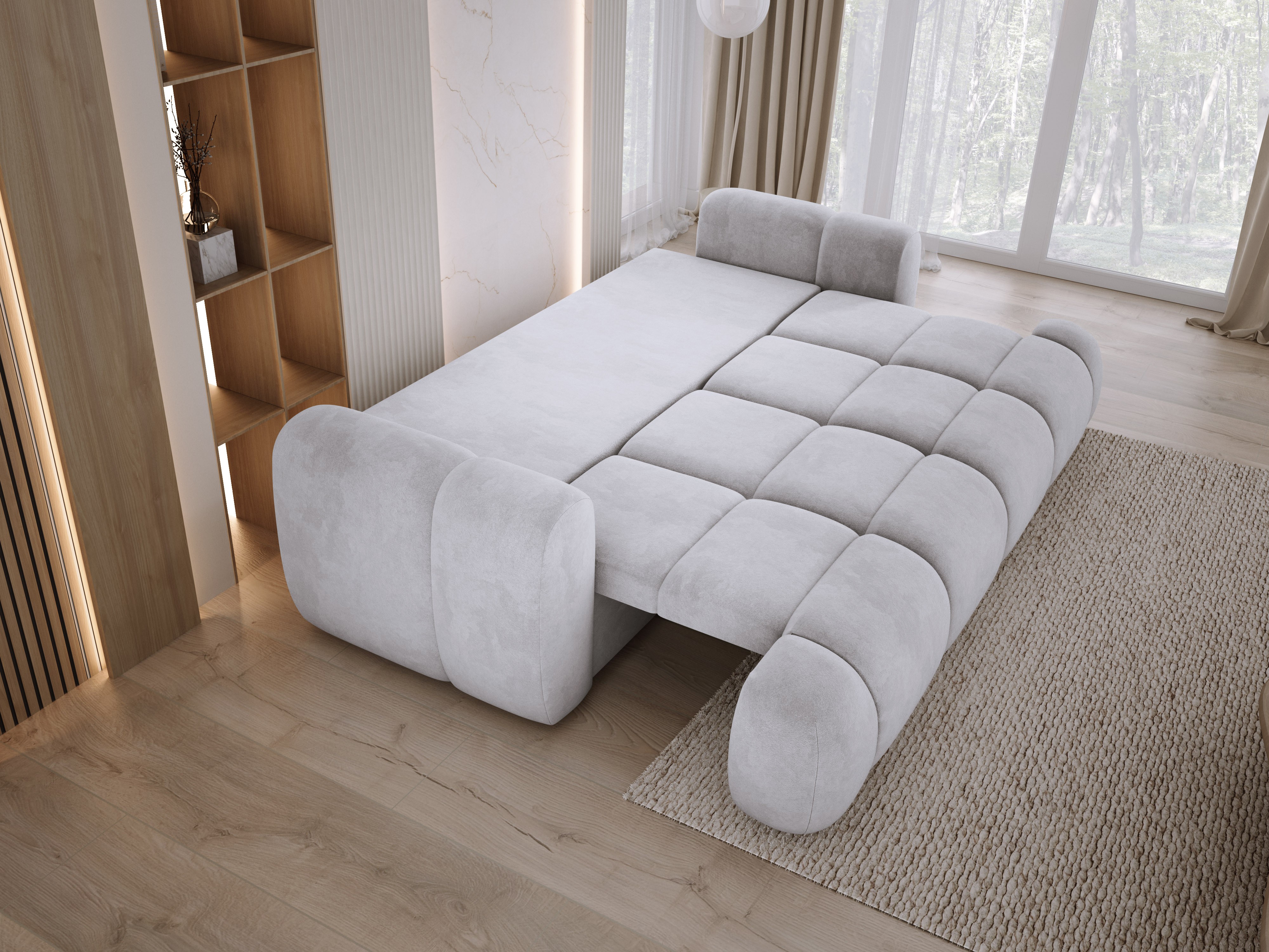 Funkcja spania DL umożliwia szybkie przekształcenie sofy w wygodne łóżko. Wbudowany pojemnik na pościel pozwala przechować wszystko, co potrzebne, by utrzymać porządek.