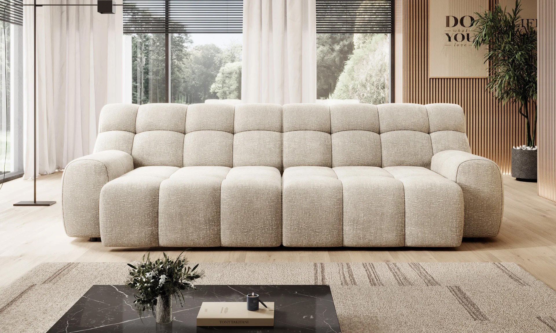 COCOON doskonale prezentuje się w nowoczesnych i minimalistycznych wnętrzach – niezależnie od metrażu pomieszczenia przyciąga wzrok i tworzy stylowe centrum salonu.