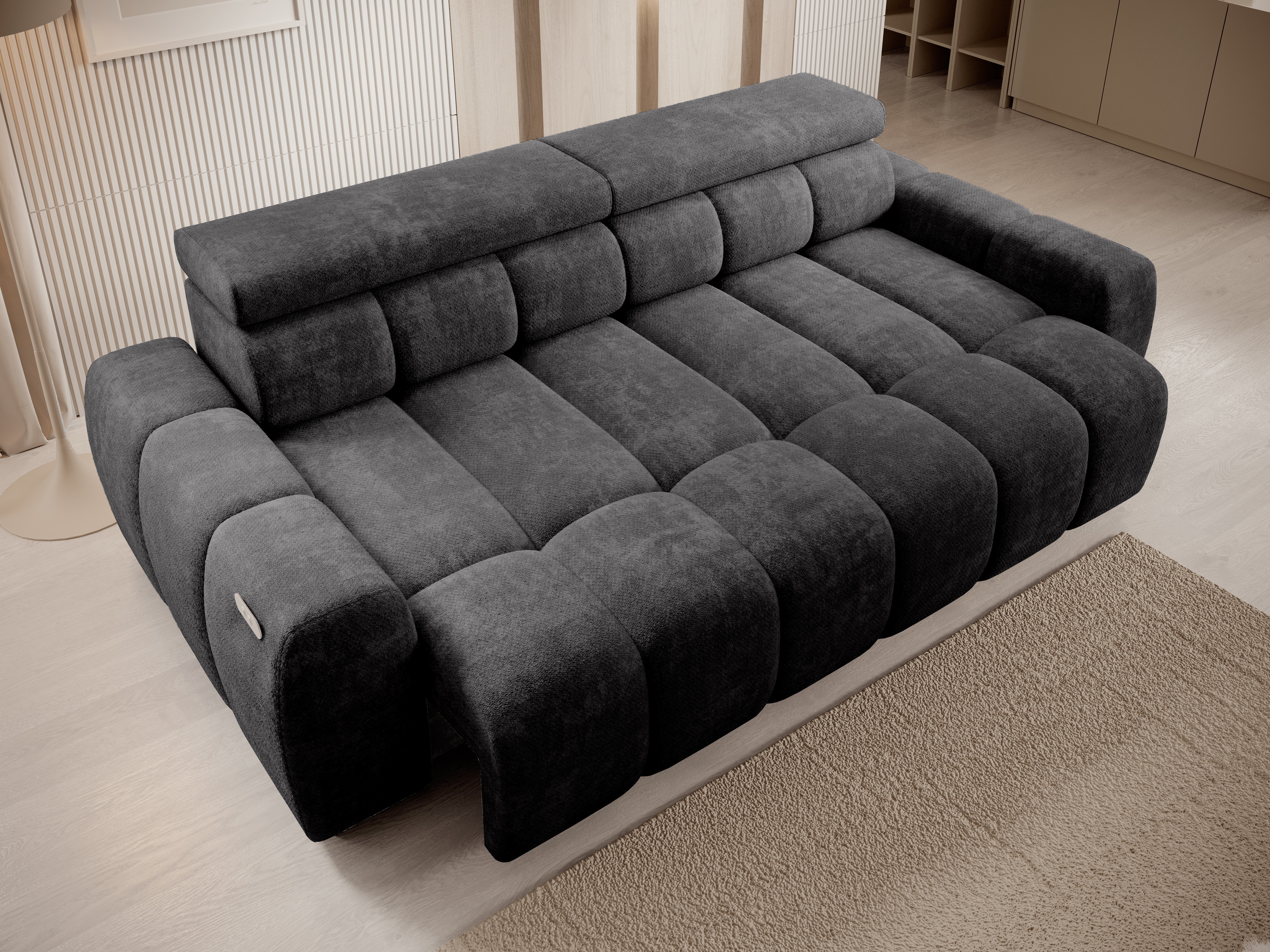 Nowoczesne wzornictwo, geometryczna forma i starannie dobrane detale sprawiają, że sofa BULL świetnie odnajduje się w minimalistycznych i designerskich wnętrzach.