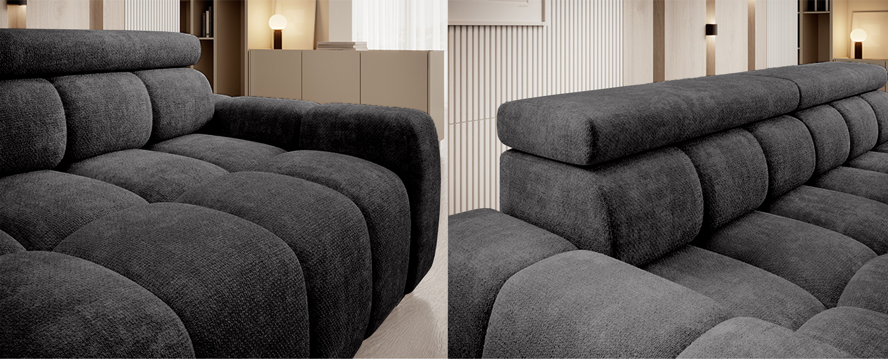 Nowoczesne wzornictwo, geometryczna forma i starannie dobrane detale sprawiają, że sofa BULL świetnie odnajduje się w minimalistycznych i designerskich wnętrzach.