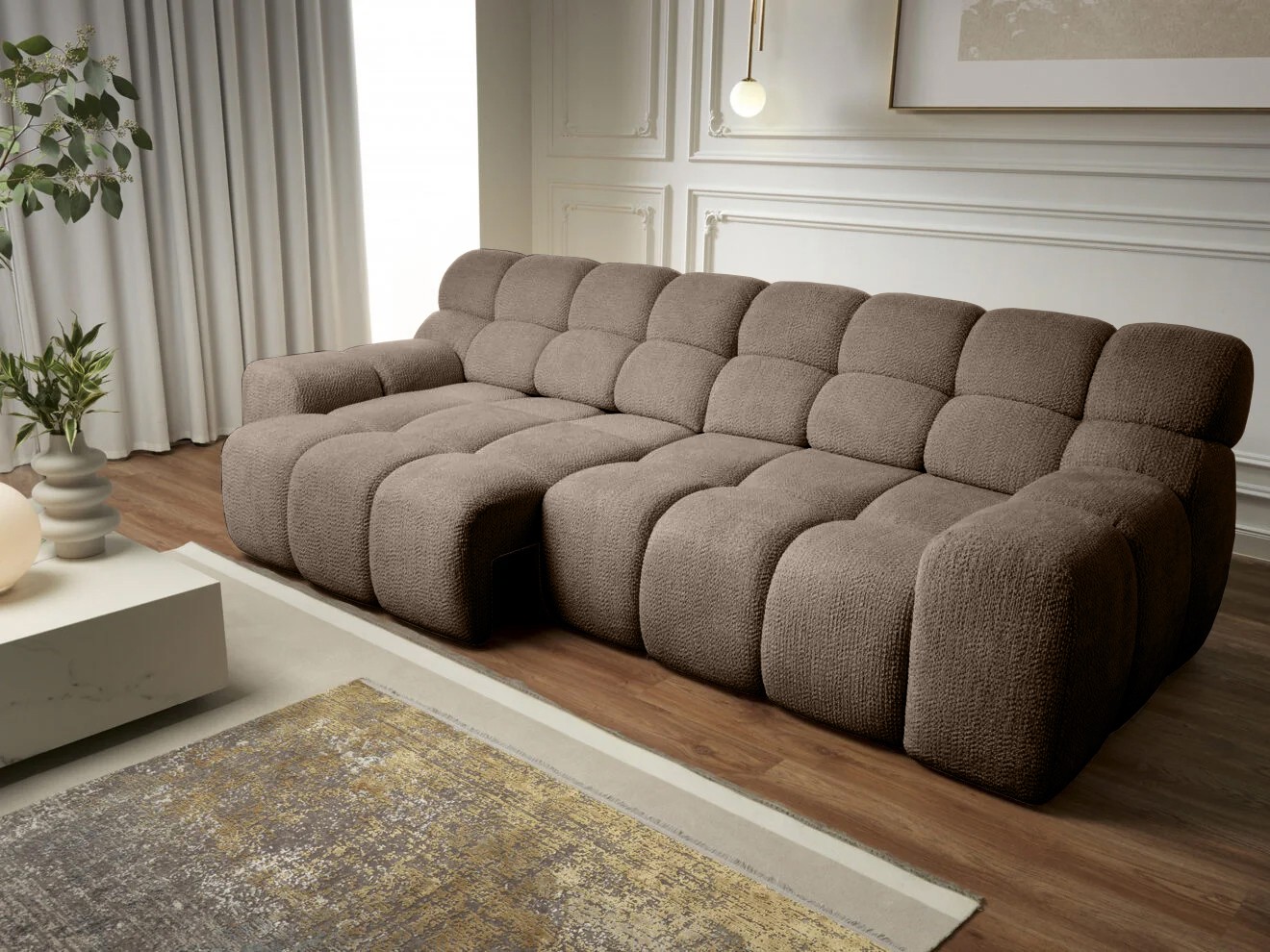 Wyposażona w funkcję spania oraz elektryczną regulację głębokości siedziska , sofa CAMPILE pozwala dopasować komfort wypoczynku do własnych preferencji.