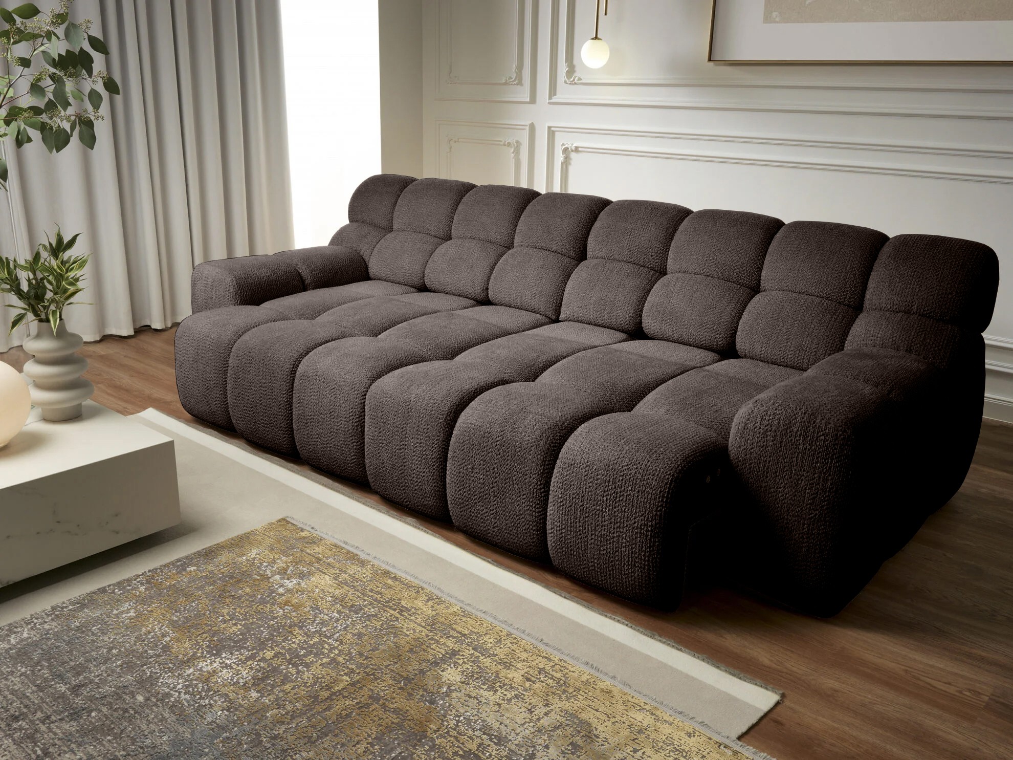 Wyposażona w funkcję spania oraz elektryczną regulację głębokości siedziska , sofa CAMPILE pozwala dopasować komfort wypoczynku do własnych preferencji.