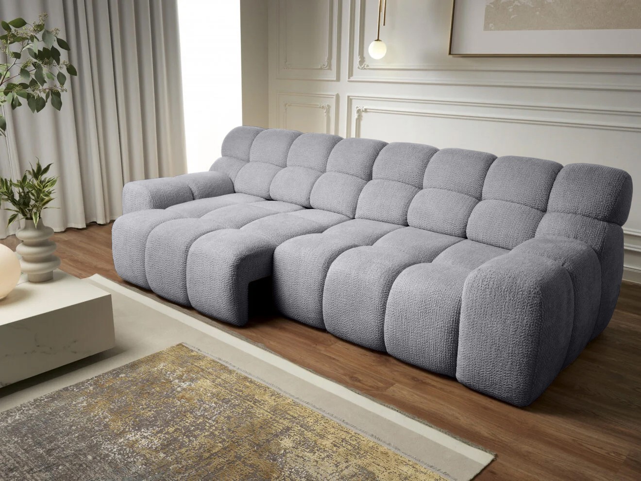 CAMPILE doskonale prezentuje się w nowoczesnych i minimalistycznych wnętrzach – niezależnie od metrażu pomieszczenia przyciąga wzrok i tworzy stylowe centrum salonu.