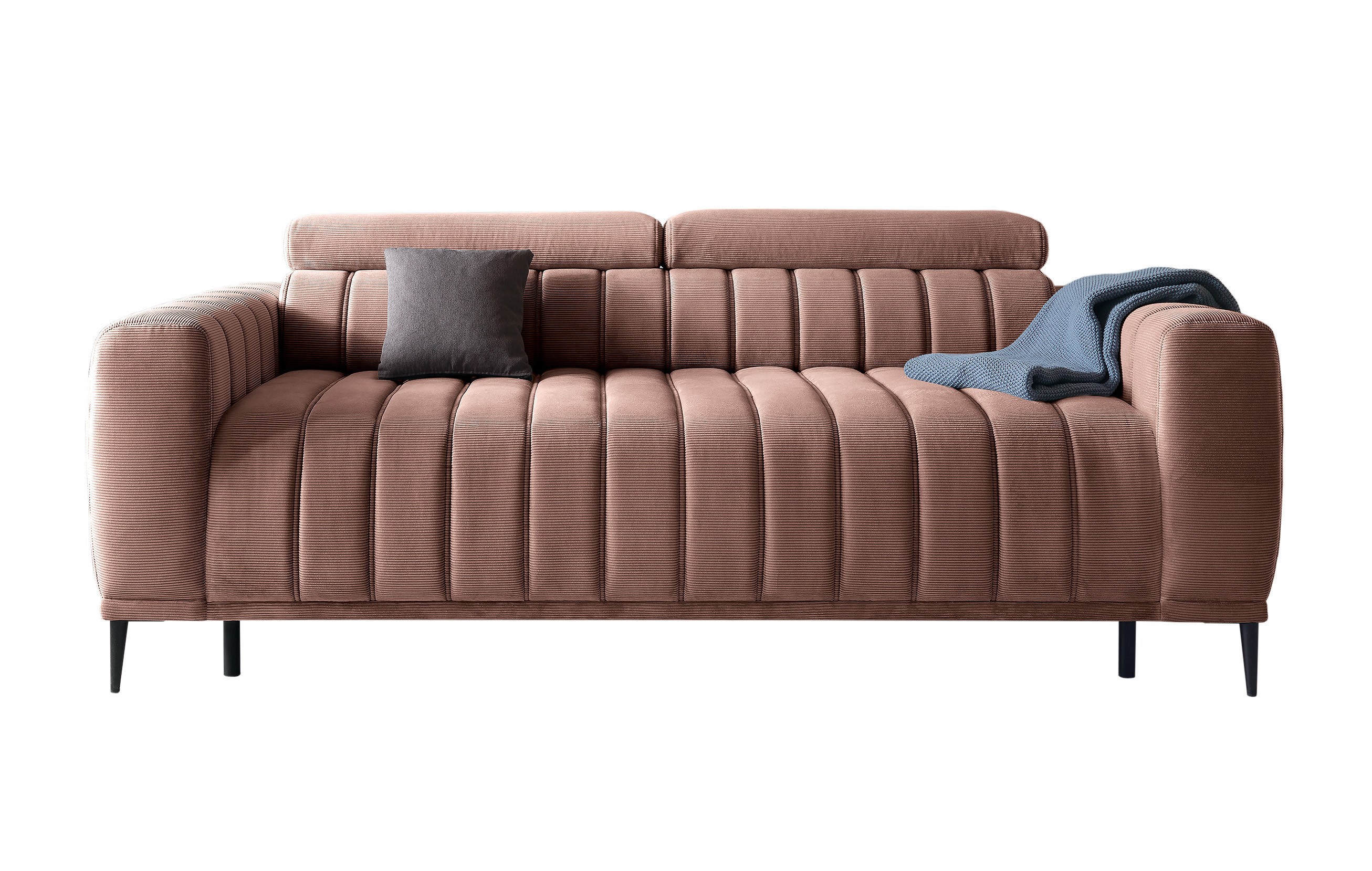 Wysokie, smukłe metalowe nogi dodają meblowi lekkości, a regulowane zagłówki (funkcja RELAX) umożliwiają indywidualne dopasowanie pozycji do potrzeb użytkownika, zapewniając wygodę zarówno podczas siedzenia, jak i relaksu.