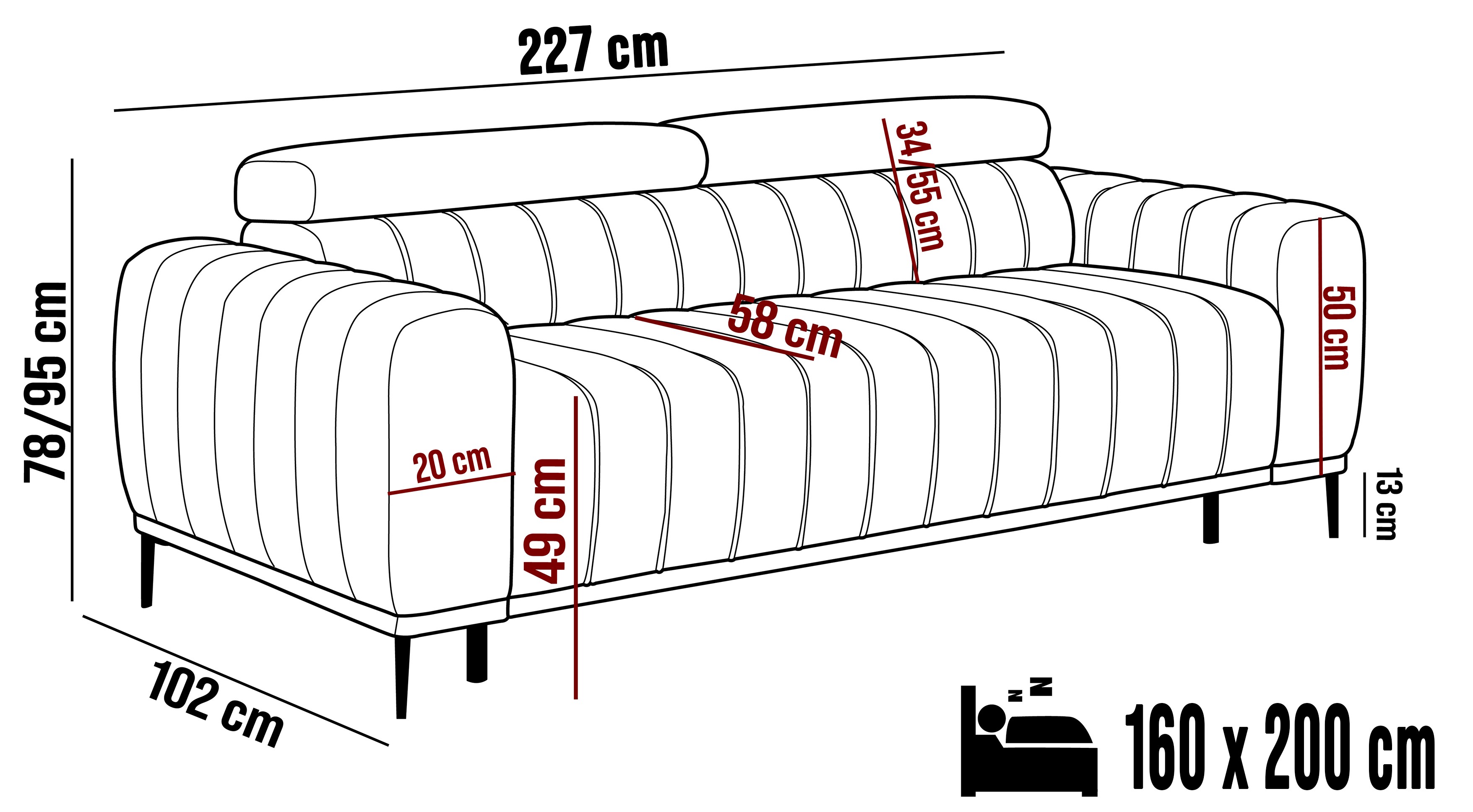 227x102x95 cm