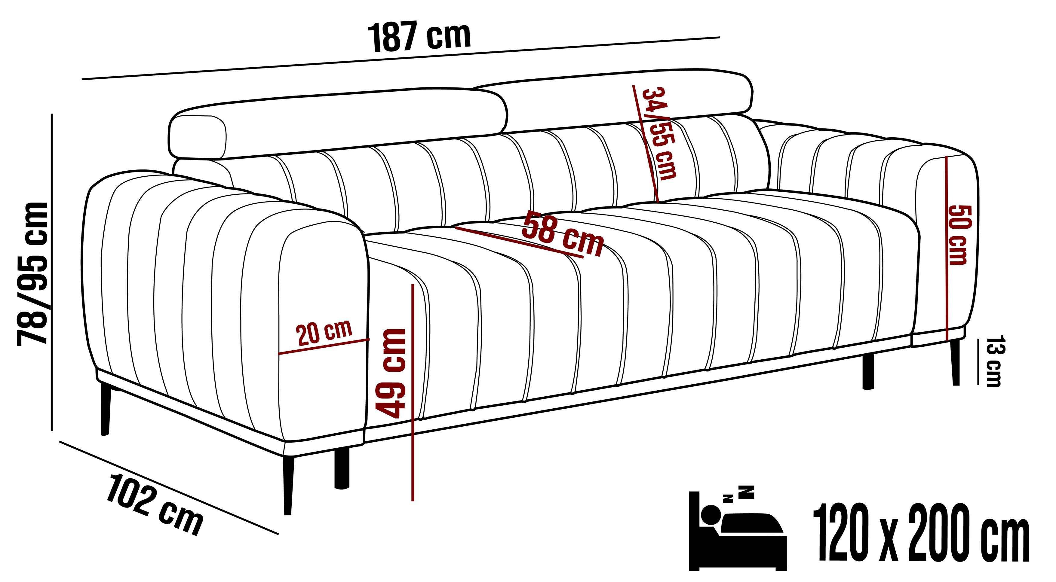 187x102x95 cm