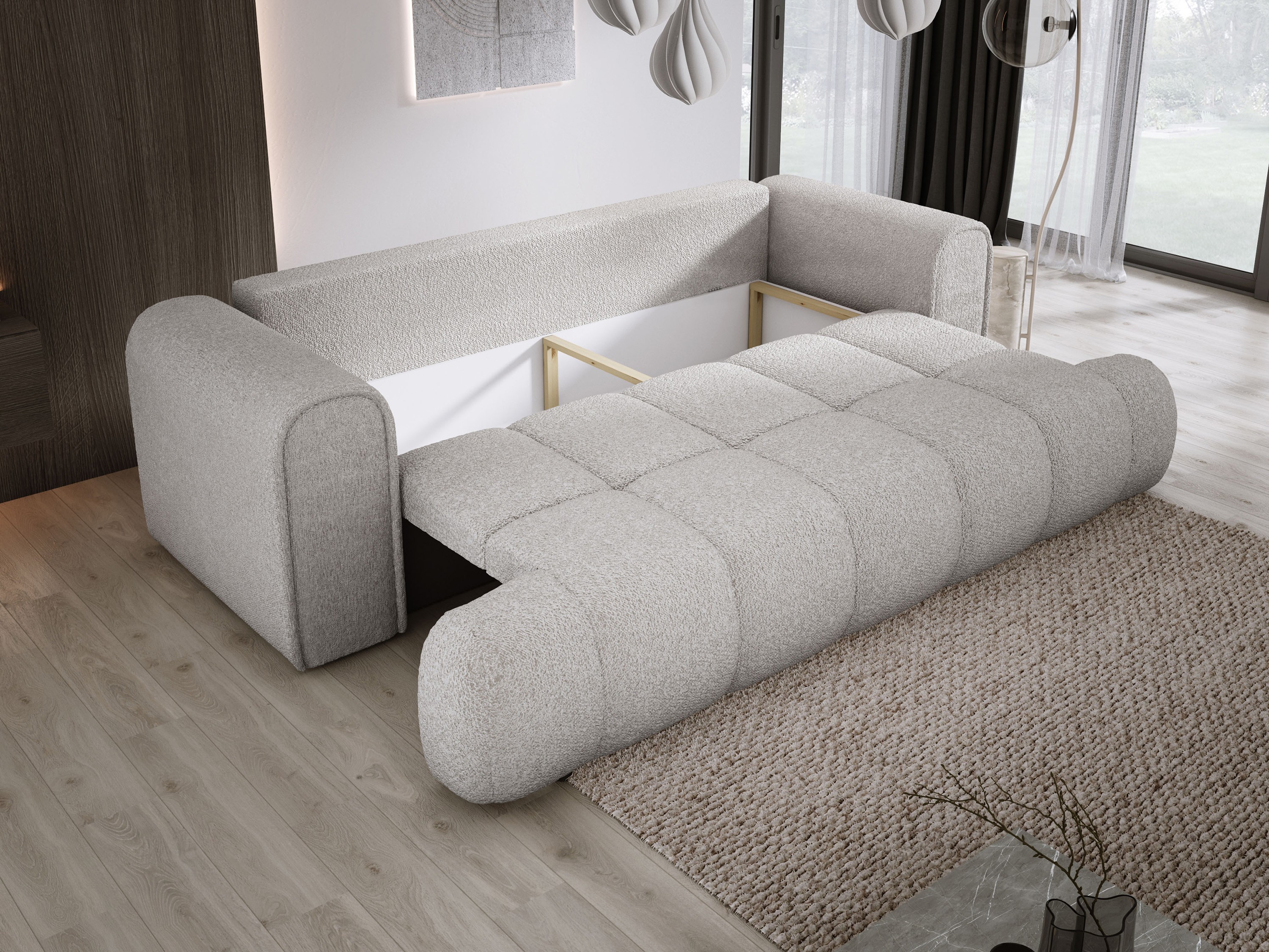 Funkcja spania DL umożliwia szybkie przekształcenie sofy w wygodne łóżko. Wbudowany pojemnik na pościel pozwala przechować wszystko, co potrzebne, by utrzymać porządek.