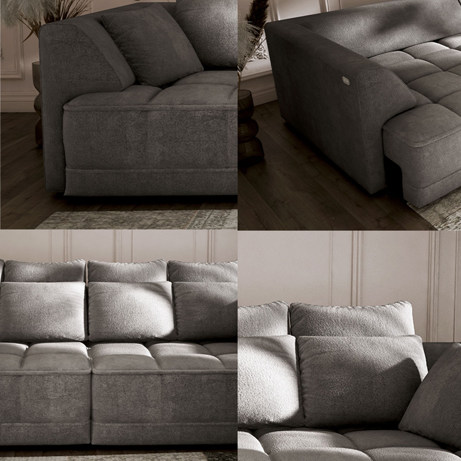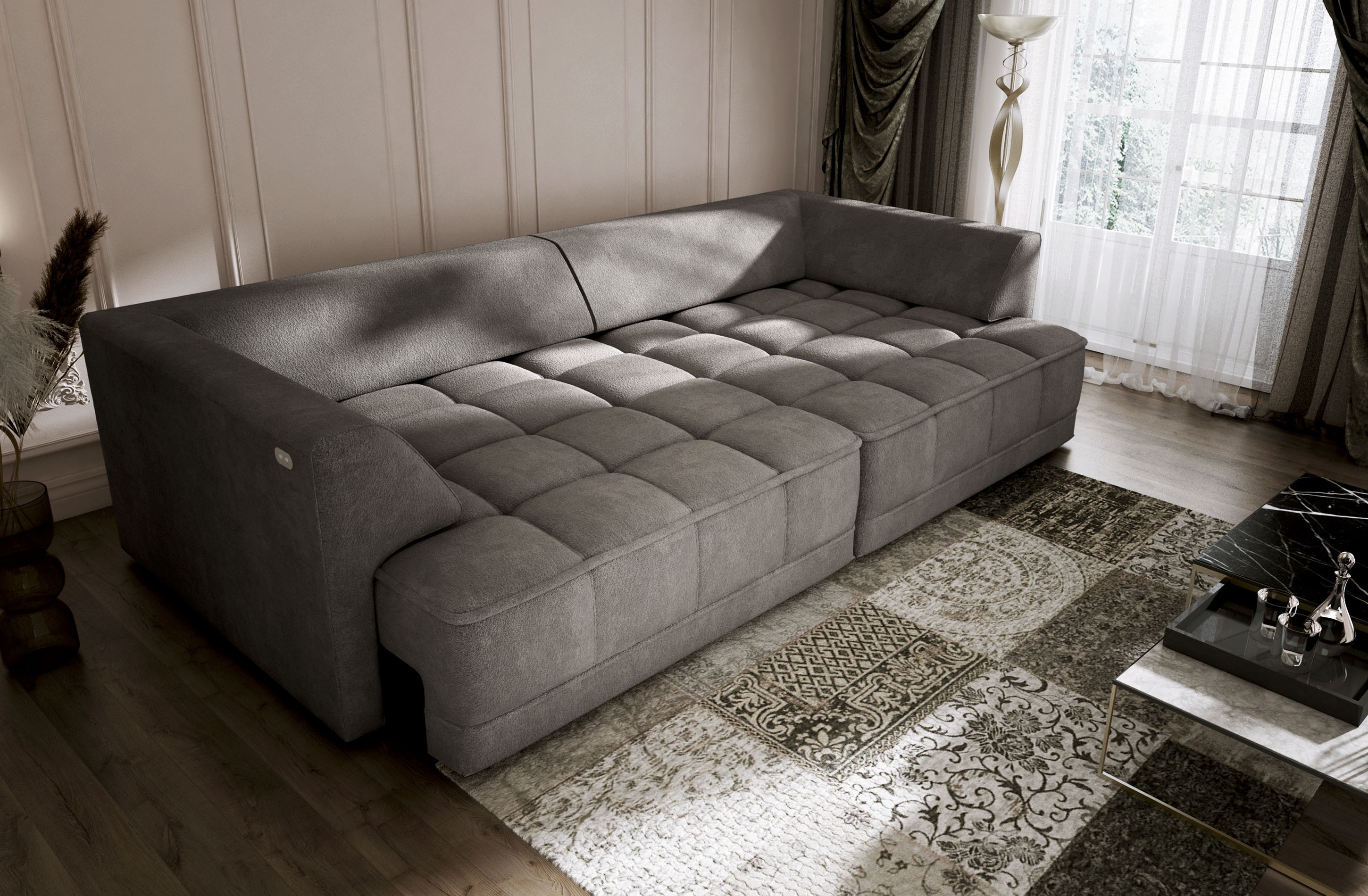 Elektrycznie wysuwane siedzisko (do 27 cm) pozwala w łatwy sposób dostosować sofę do swoich potrzeb – tworząc przestrzeń do odpoczynku, drzemki lub wieczornego relaksu.