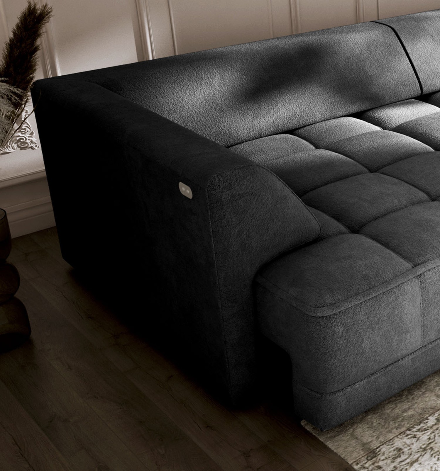 Elektrycznie wysuwane siedzisko (do 27 cm) pozwala w łatwy sposób dostosować sofę do swoich potrzeb – tworząc przestrzeń do odpoczynku, drzemki lub wieczornego relaksu.