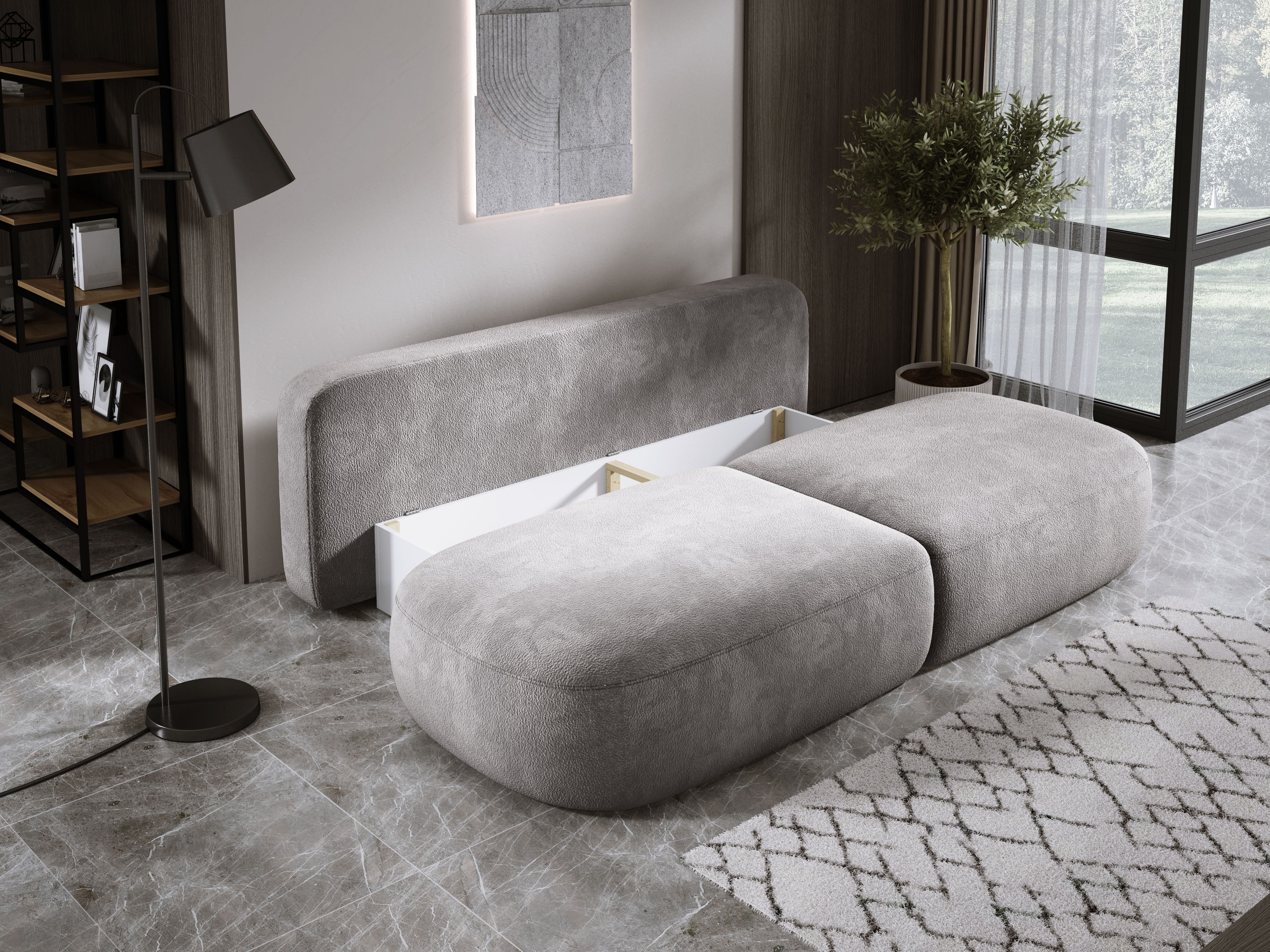 Minimalistyczna forma, duże luźne poduchy oparciowe oraz subtelne detale sprawiają, że BLOOM doskonale wpisuje się w nowoczesne i skandynawskie aranżacje.