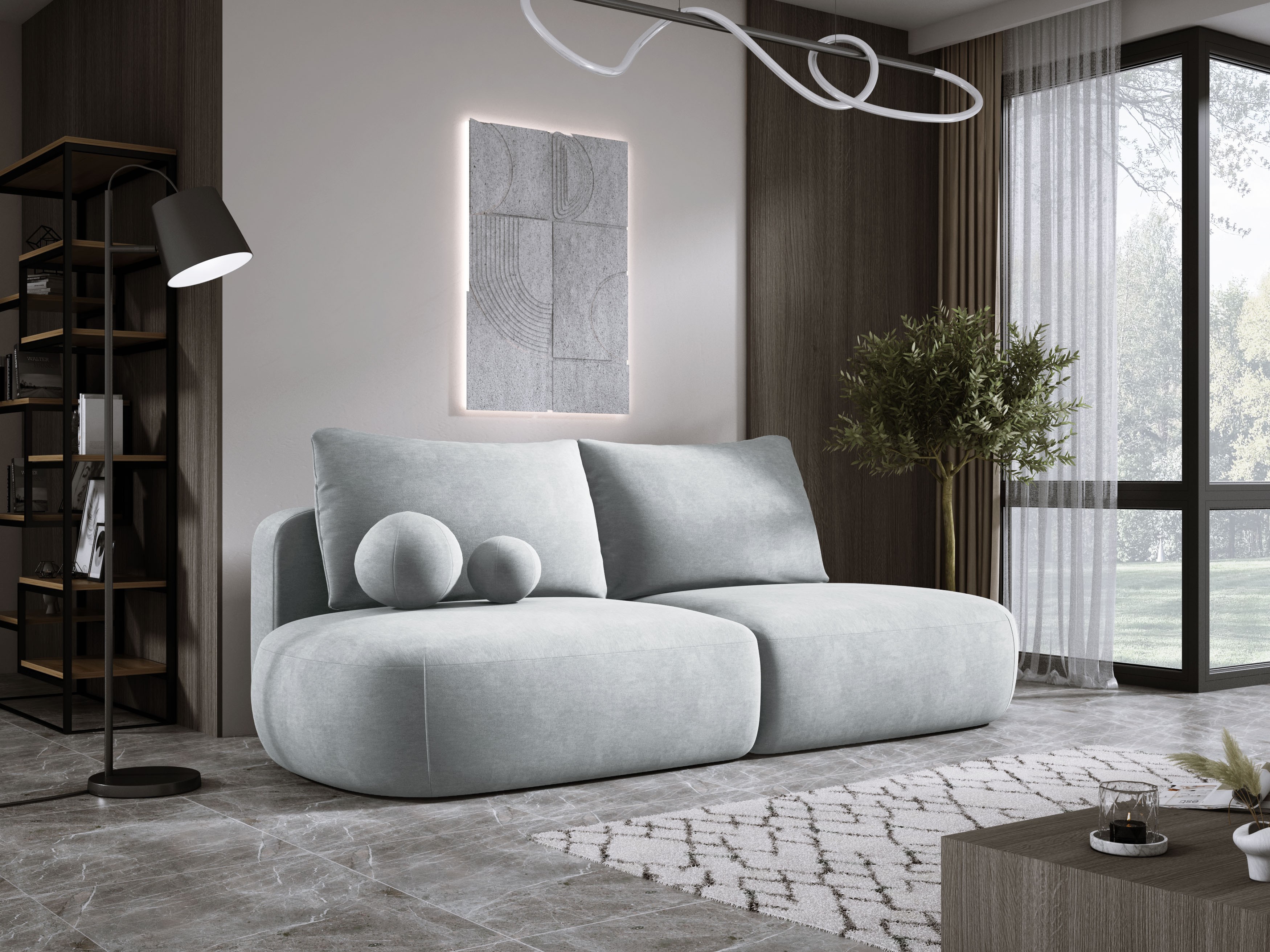 Sofa BLOOM Kanapa z funkcja spania i pojemnikiem w tkaninie APHRODITE 04 kolor JASNO SZARY