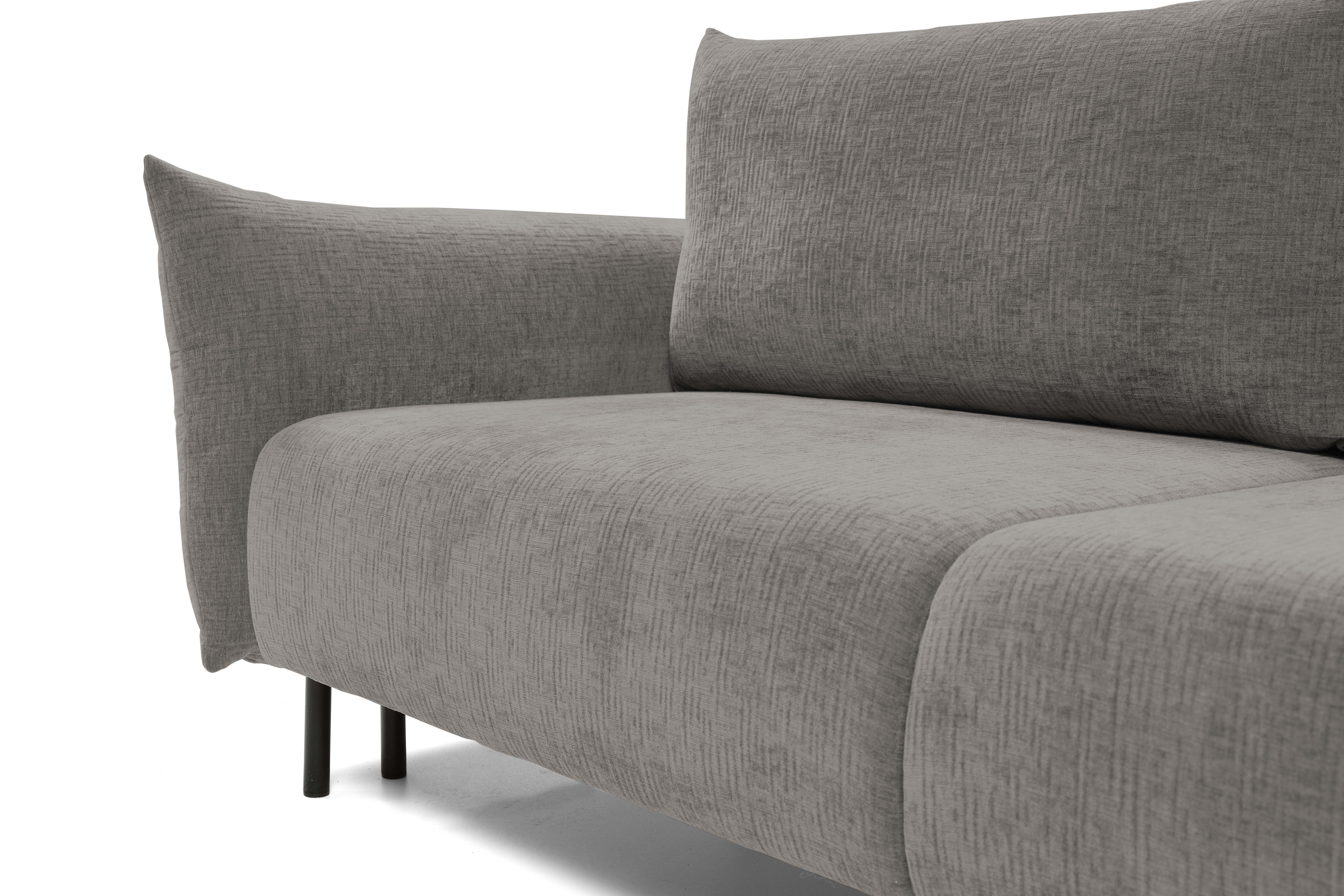 Cienkie, czarne nogi podkreślają lekkość konstrukcji, a funkcja spania z automatem wspomagającym rozkładanie oraz pojemnik na pościel sprawiają, że sofa ADEL jest nie tylko stylowa, ale i funkcjonalna.