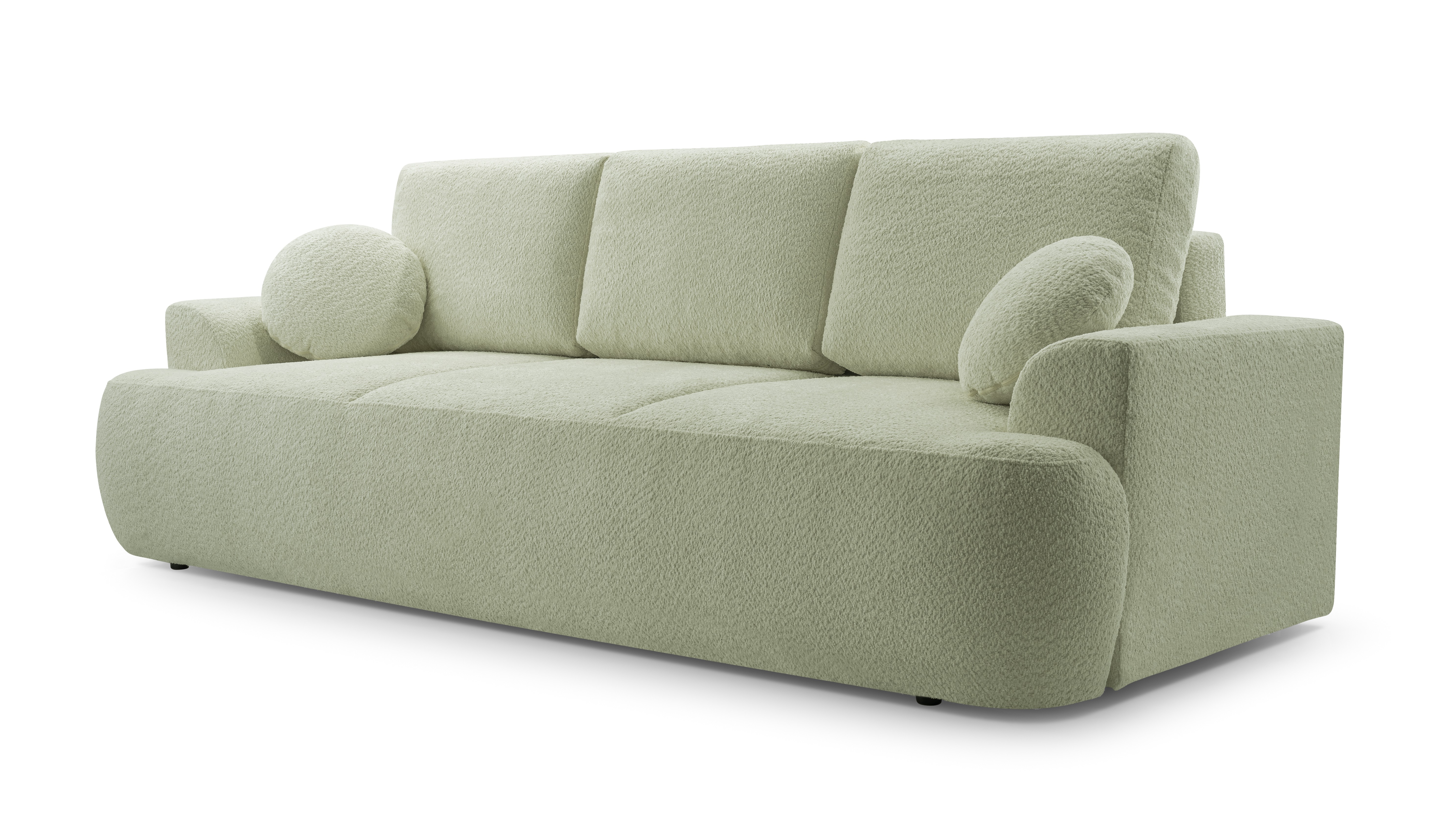 Miękka, puszysta tapicerka otula ciało i zaprasza do relaksu, a zaokrąglone poduszki nadają kanapie lekkości i wyjątkowego komfortu.