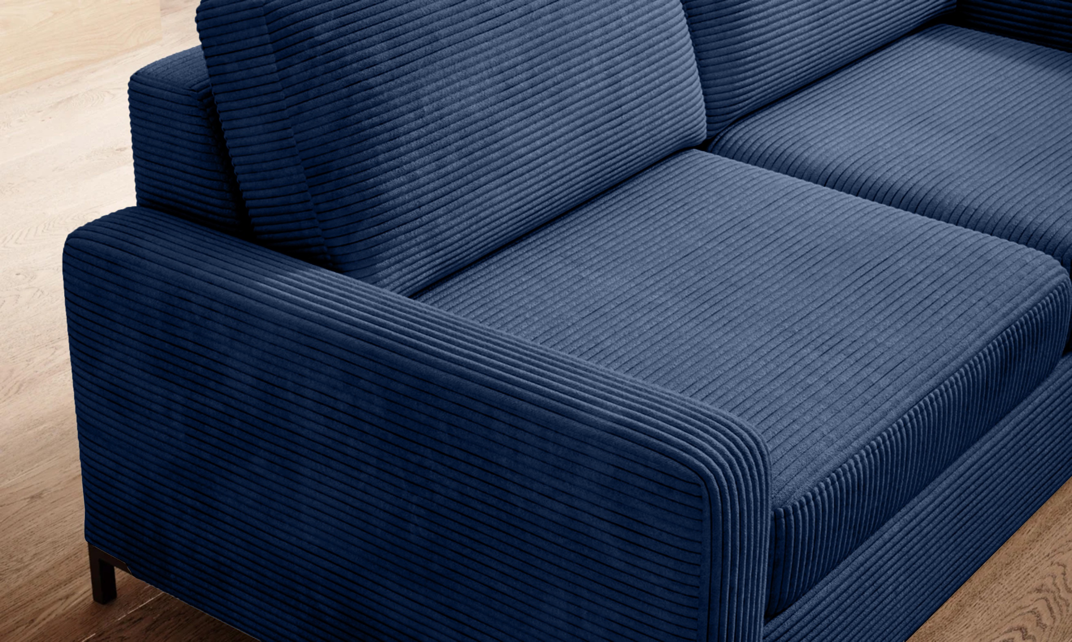 Sprężyny faliste oraz wysoko elastyczna pianka gwarantują komfort i trwałość, a wolnostojąca konstrukcja umożliwia ustawienie sofy w dowolnym miejscu – również na środku pomieszczenia.