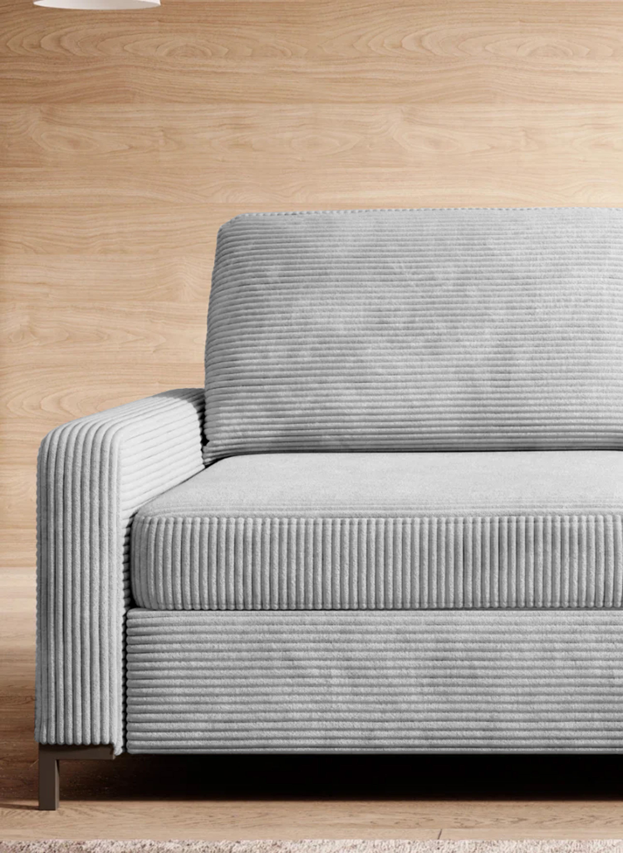Sprężyny faliste oraz wysoko elastyczna pianka gwarantują komfort i trwałość, a wolnostojąca konstrukcja umożliwia ustawienie sofy w dowolnym miejscu – również na środku pomieszczenia.