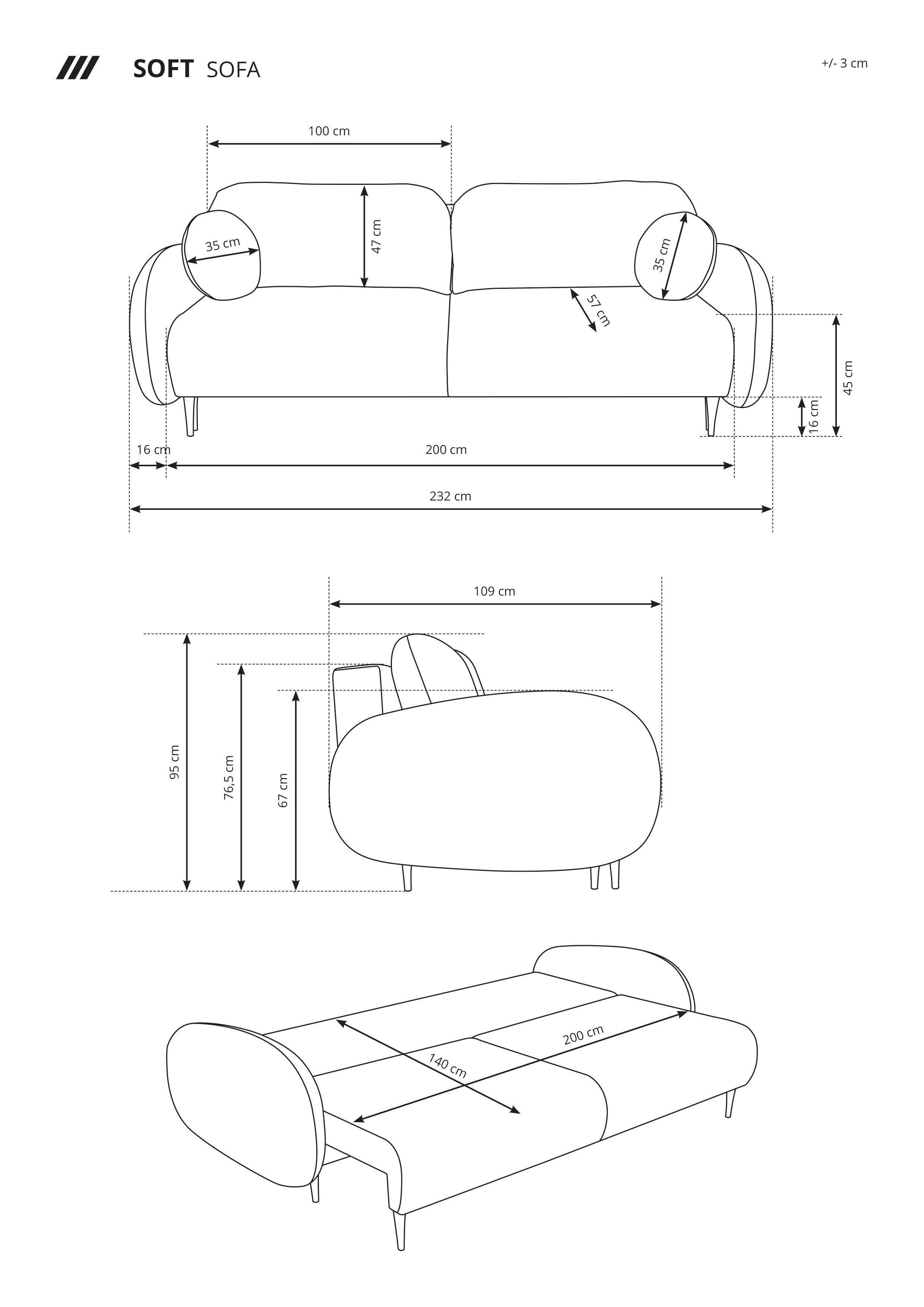 Wyposażona w funkcję spania, pojemnik na pościel i automat wspomagający rozkładanie, sofa SOFT doskonale sprawdzi się zarówno w codziennym relaksie, jak i w roli dodatkowego miejsca do spania.