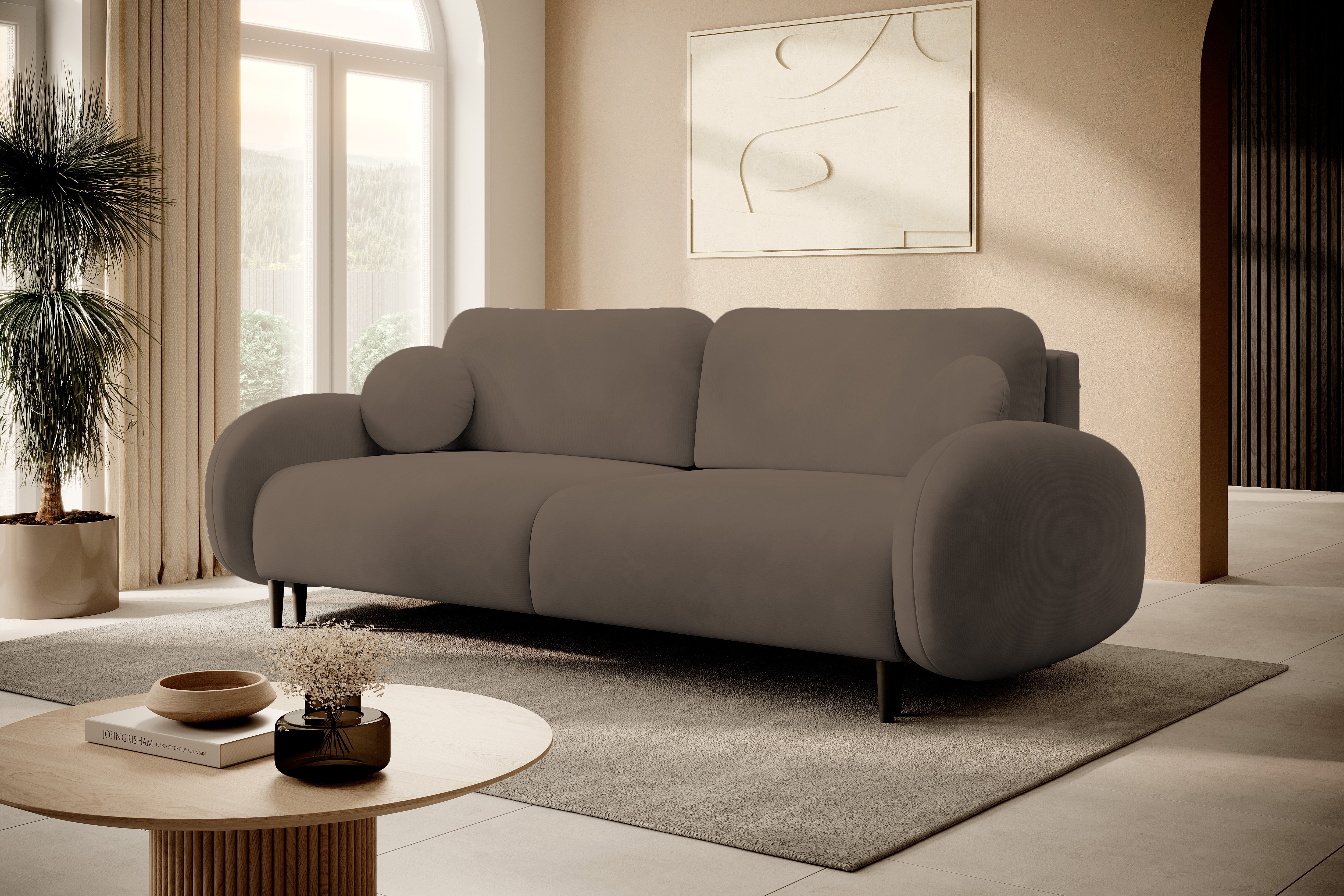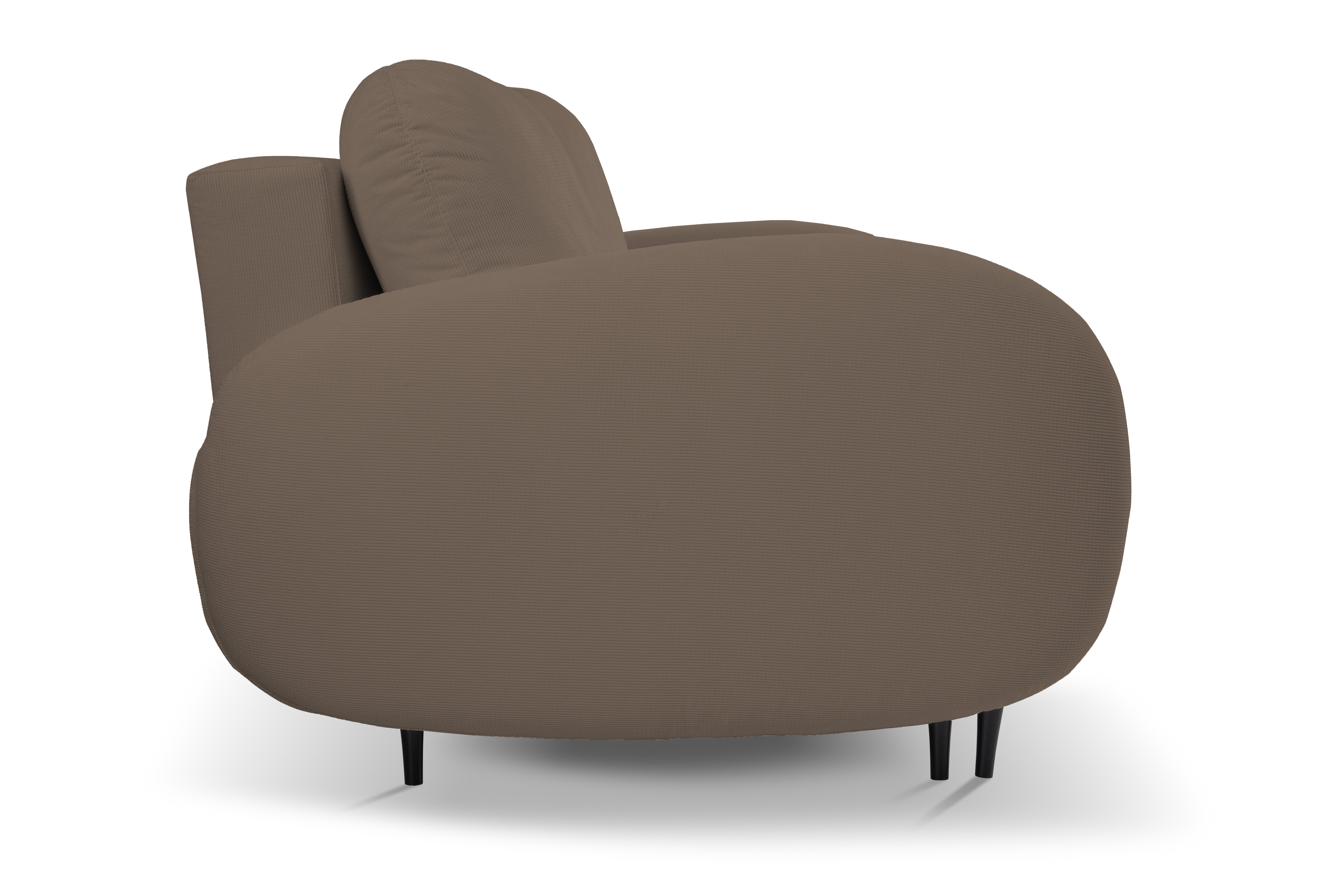 Zaokrąglone kształty oraz smukłe, drewniane nóżki nadają meblowi lekkości i stylu, a uniesiona konstrukcja ułatwia utrzymanie czystości pod sofą.