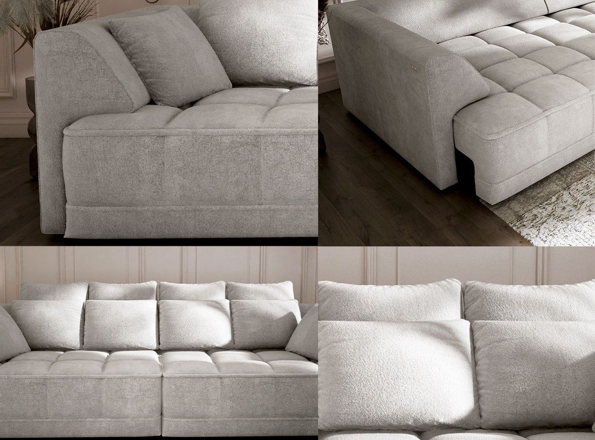 Elektrycznie wysuwane siedzisko (do 27 cm) pozwala w łatwy sposób dostosować sofę do swoich potrzeb – tworząc przestrzeń do odpoczynku, drzemki lub wieczornego relaksu.