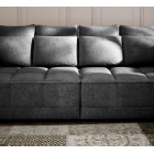 TIGA to mebel wolnostojący – tył sofy został obity tkaniną, co pozwala na ustawienie jej w dowolnym miejscu salonu. Brak pojemnika na pościel nadaje jej lekkiego, eleganckiego charakteru i zwiększa wygodę użytkowania.