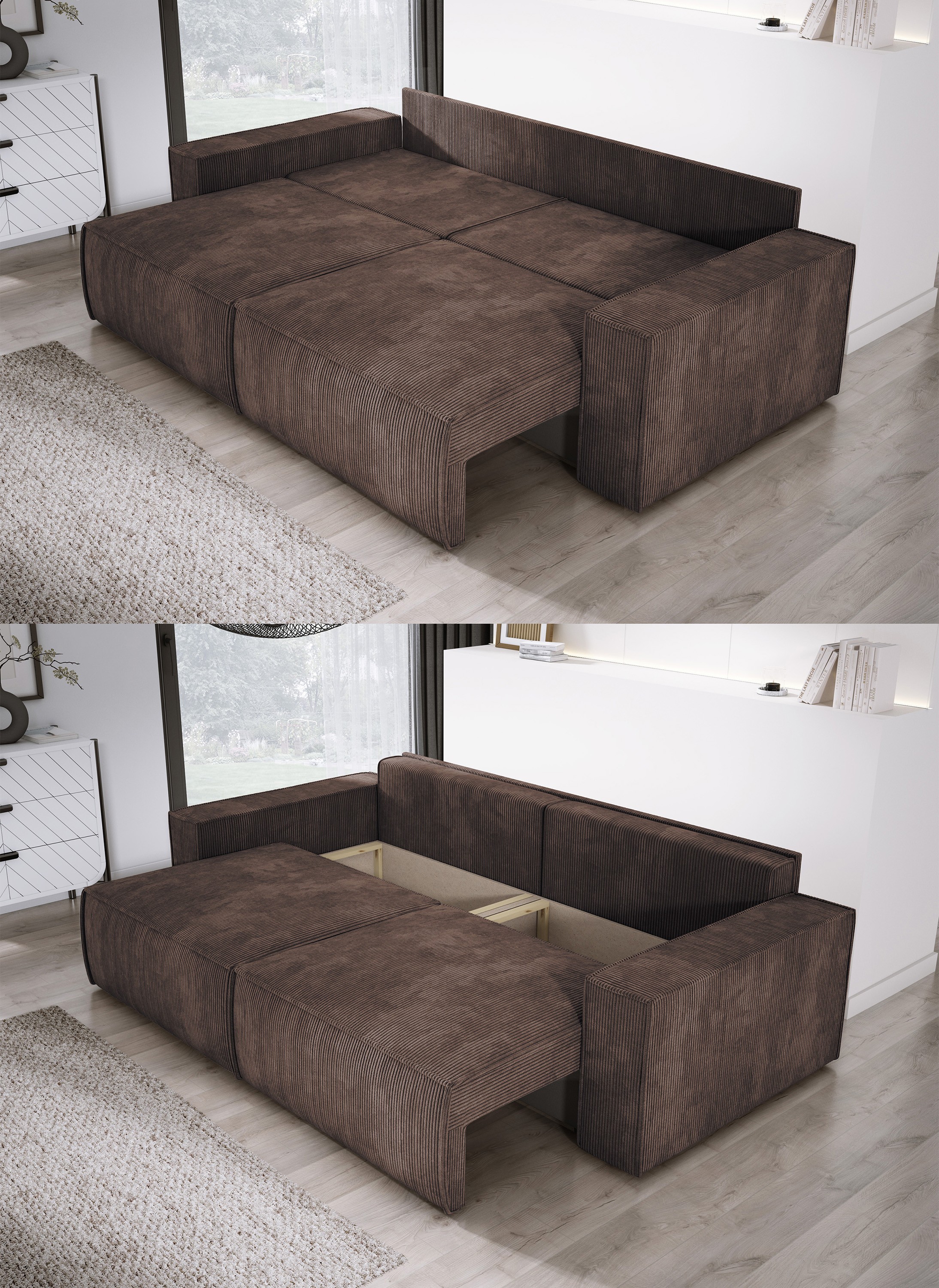 Kanapa KASJO Uniwersalny Sofo-Narożnik z funkcją spania i poduszkami, 2x pojemnik POSO 006 Brązowy DOMOHOME