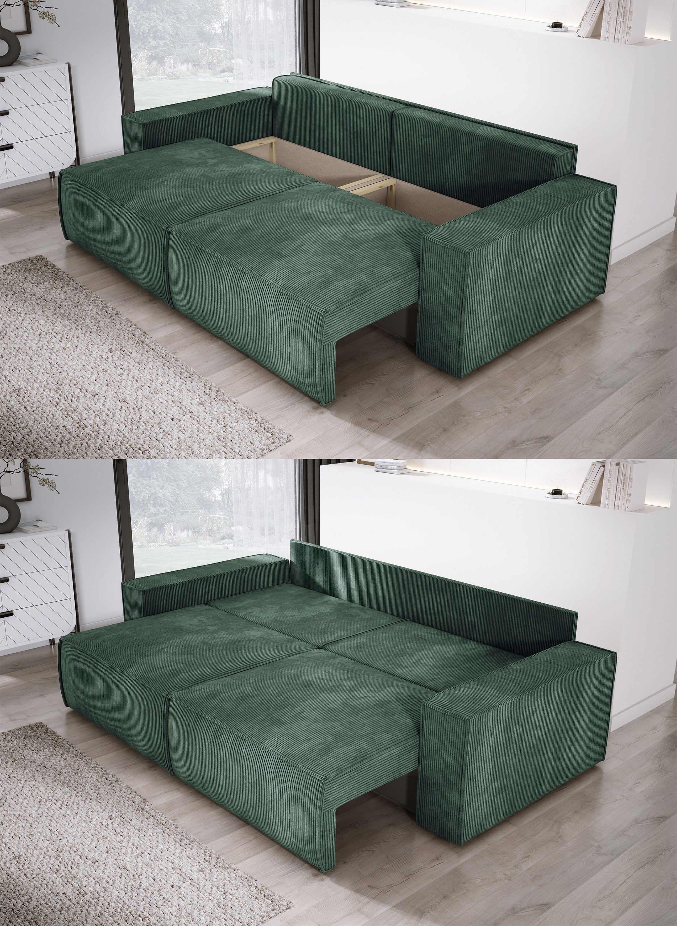 Kanapa KASJO Uniwersalny Sofo-Narożnik z funkcją spania i poduszkami, 2x pojemnik POSO 014 Zielony DOMOHOME
