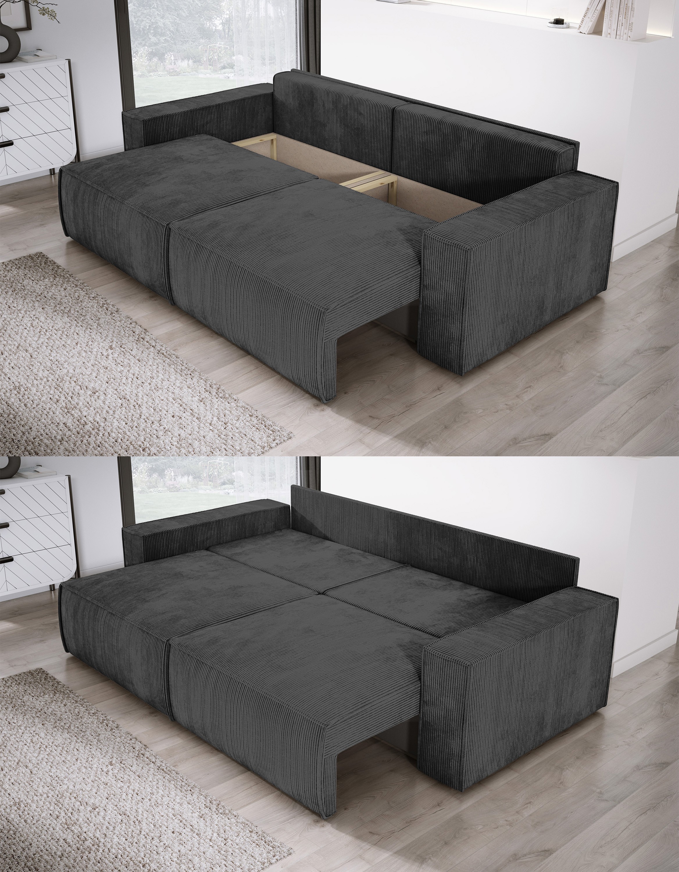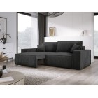 Kanapa KASJO Uniwersalny Sofo-Narożnik z funkcją spania i poduszkami, 2x pojemnik POSO 135 Grafitowy DOMOHOME